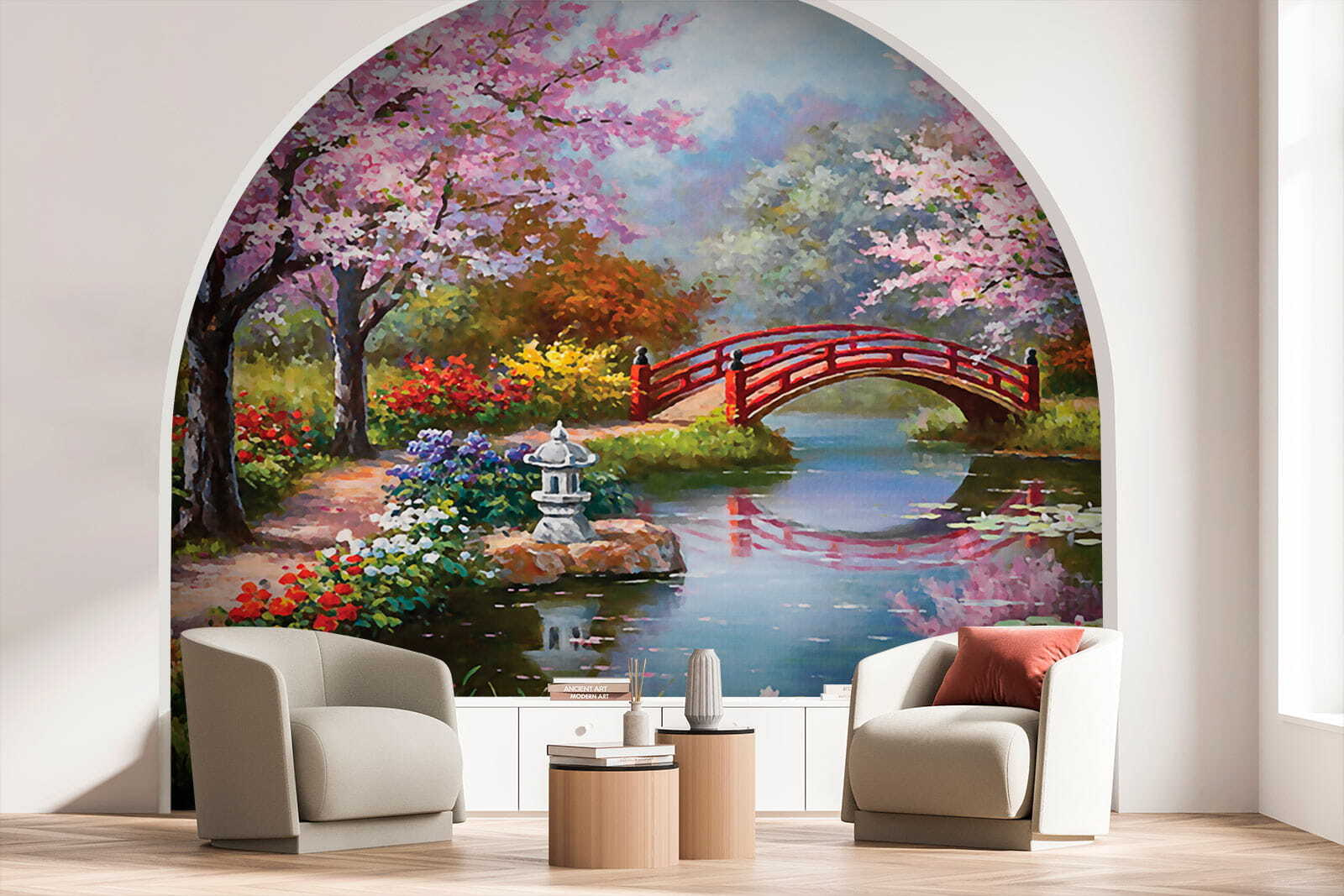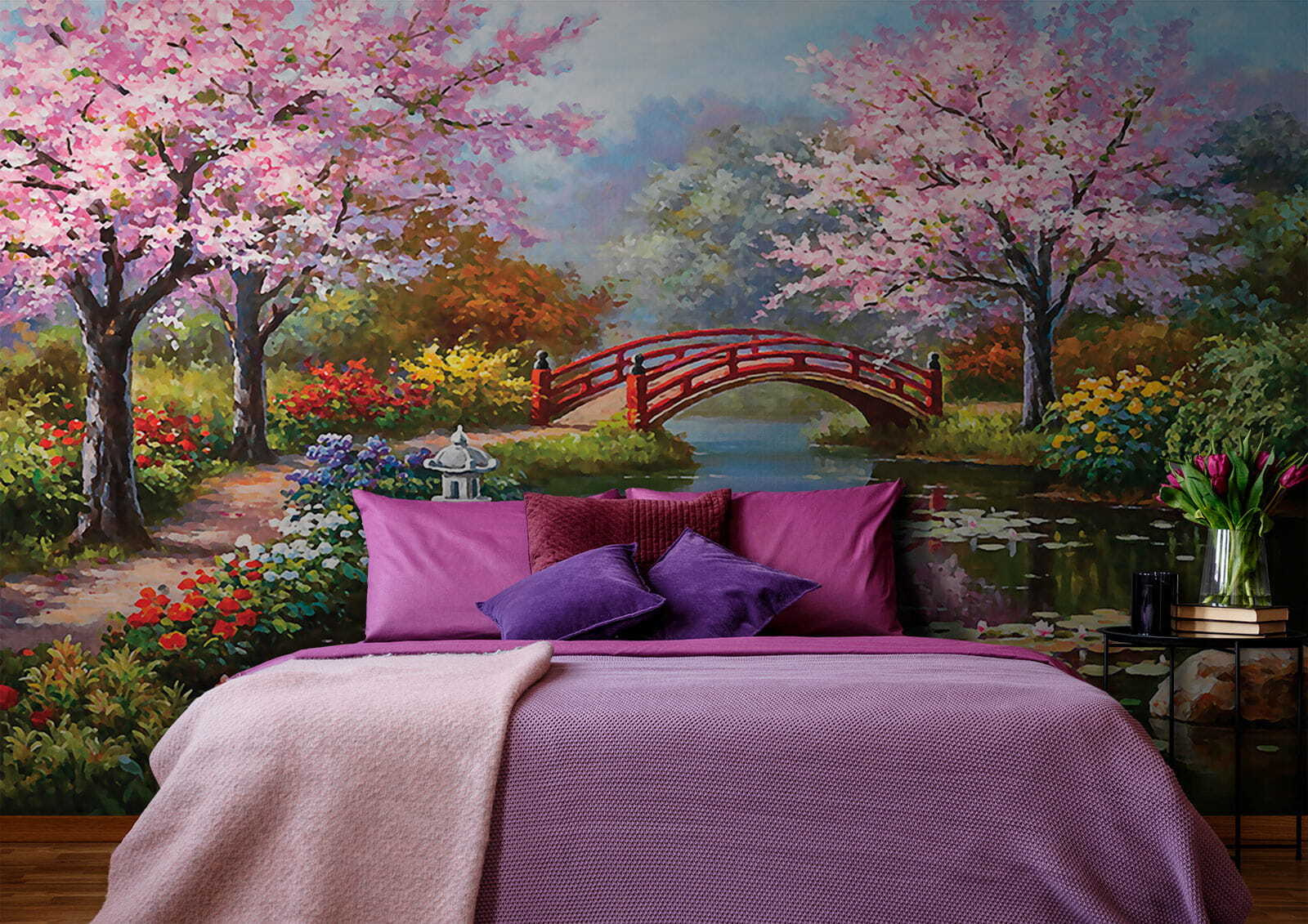 Predstavte si, že každý deň vstúpite do svojho vlastného pokojného útočiska! Freska “Pokojná záhrada s ružovými kvetmi” premení každú stenu na kúsok japonského raja. Spleť ružových kvetov, očarujúci červený most – je to ako výjav priamo zo zasnenej akvarelovej maľby. A tie odrazy… také upokojujúce! Ideálne do detských izieb, obývacích priestorov alebo na akékoľvek miesto, ktoré by potrebovalo dotyk jemného zenu. Len si to predstavte – každé ráno sa zobudiť do tejto pokojnej záhrady, vôňa kvetov je takmer hmatateľná, vtáčiky ticho štebocú. Budete sa cítiť, akoby ste utiekli do tajnej záhrady! Verte mi, táto nástenná maľba nie je len o vizuálnej stránke – je o pocite pokoja, šťastia a trochu rozmarnosti! Navyše je to obľúbený výber medzi milovníkmi prírody a nadšencami dekorácií. Kúsok pokoja priamo na vašej stene.