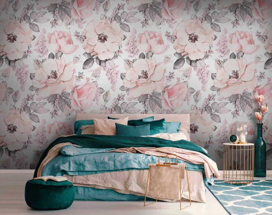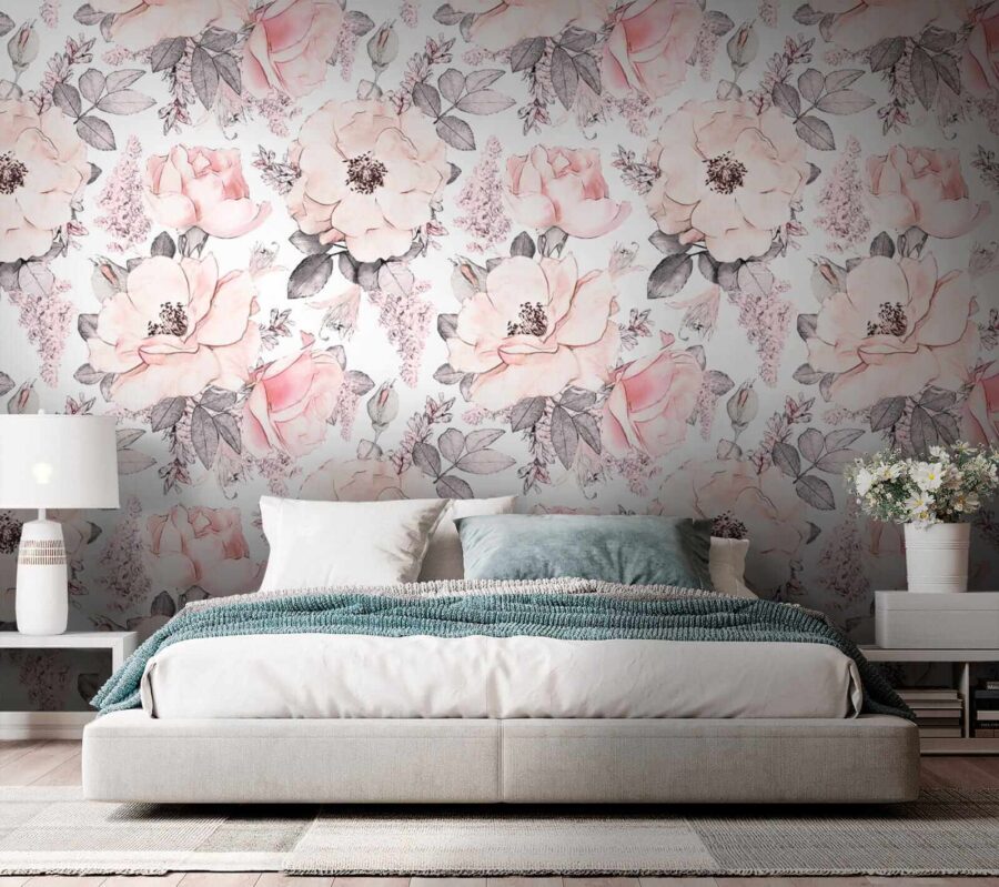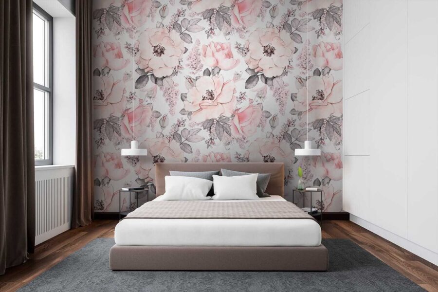 Premeňte nudnú stenu na kvitnúci raj s touto ohromujúcou nástennou maľbou, ktorá sa vyznačuje nádherným vzorom kvetov a listov. Predstavte si, ako popíjate šálku kávy, zatiaľ čo ste obklopení týmito jemnými ružovými kvetmi – naozaj, kto potrebuje záhradu, keď má toto?