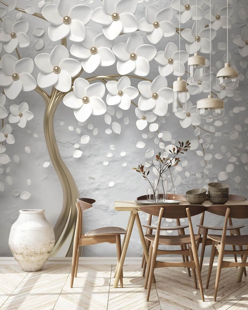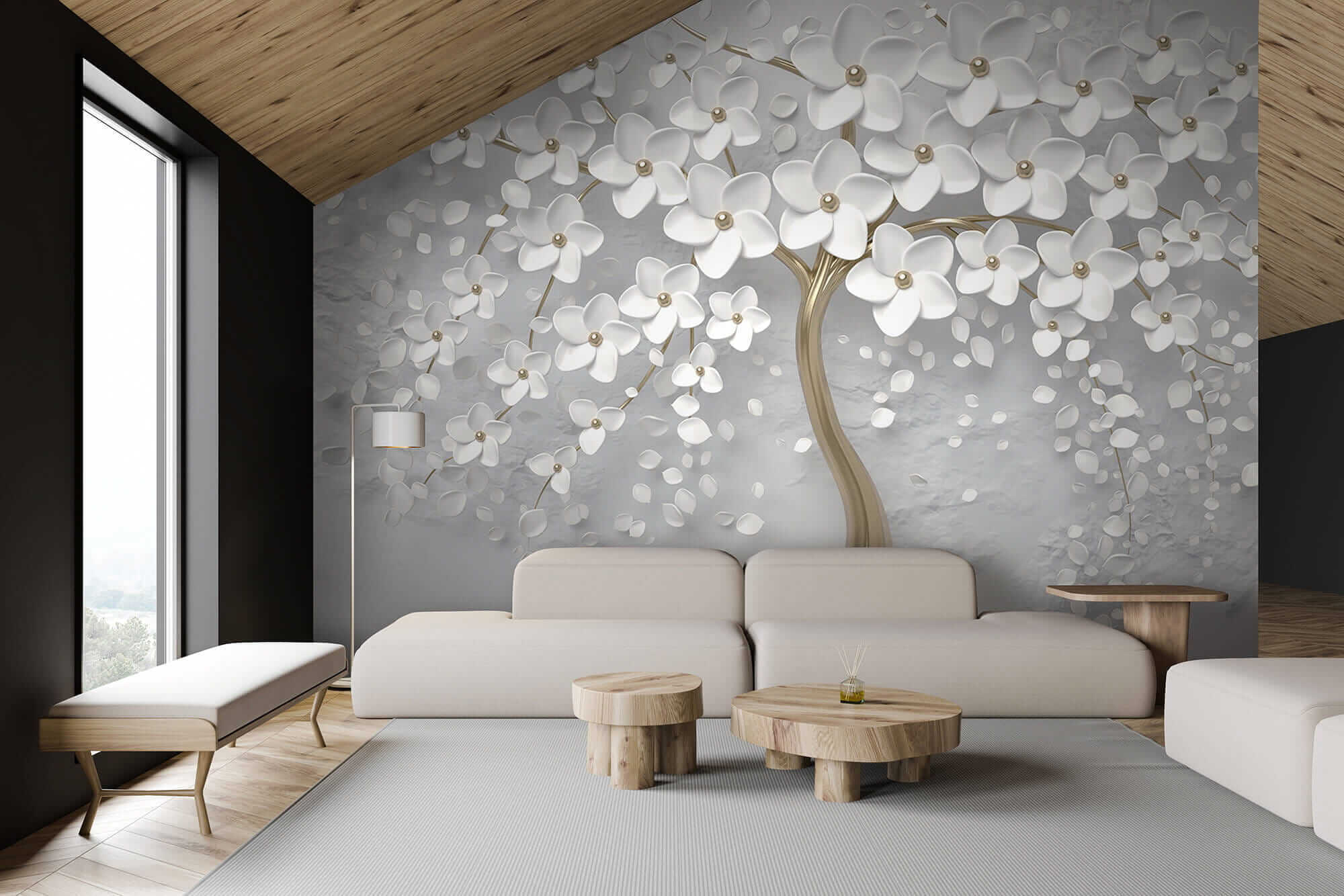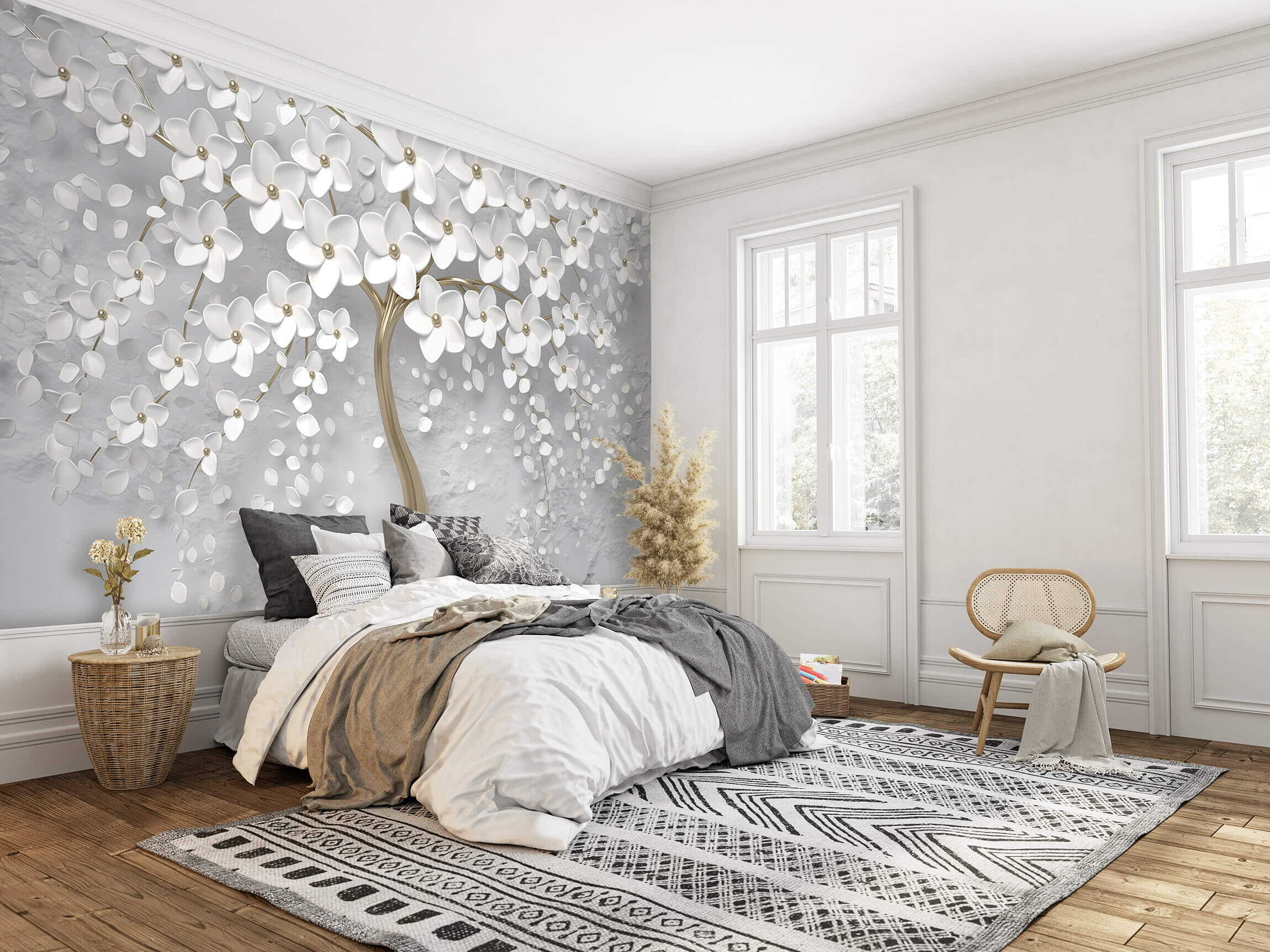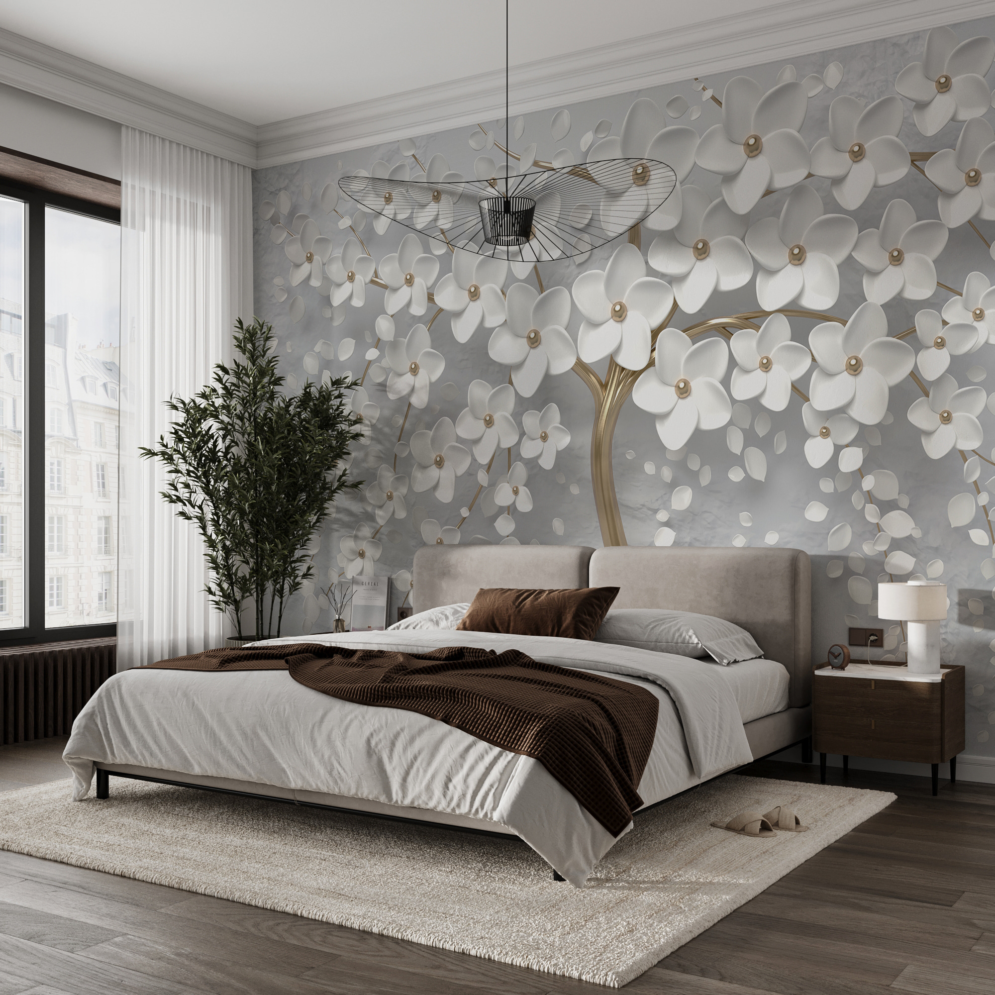 Zložité vetvy zdobené jemnými bielymi kvetmi takmer akoby vyskakovali zo steny – dodajú vášmu priestoru svieži, dynamický vzhľad. A buďme úprimní, kto by sa necítil o niečo šťastnejší, keď každý deň vidí krásny rozkvitnutý strom? Má ten magický spôsob, ako urobiť každú miestnosť svetlejšou, jasnejšou a trochu výnimočnejšou.
