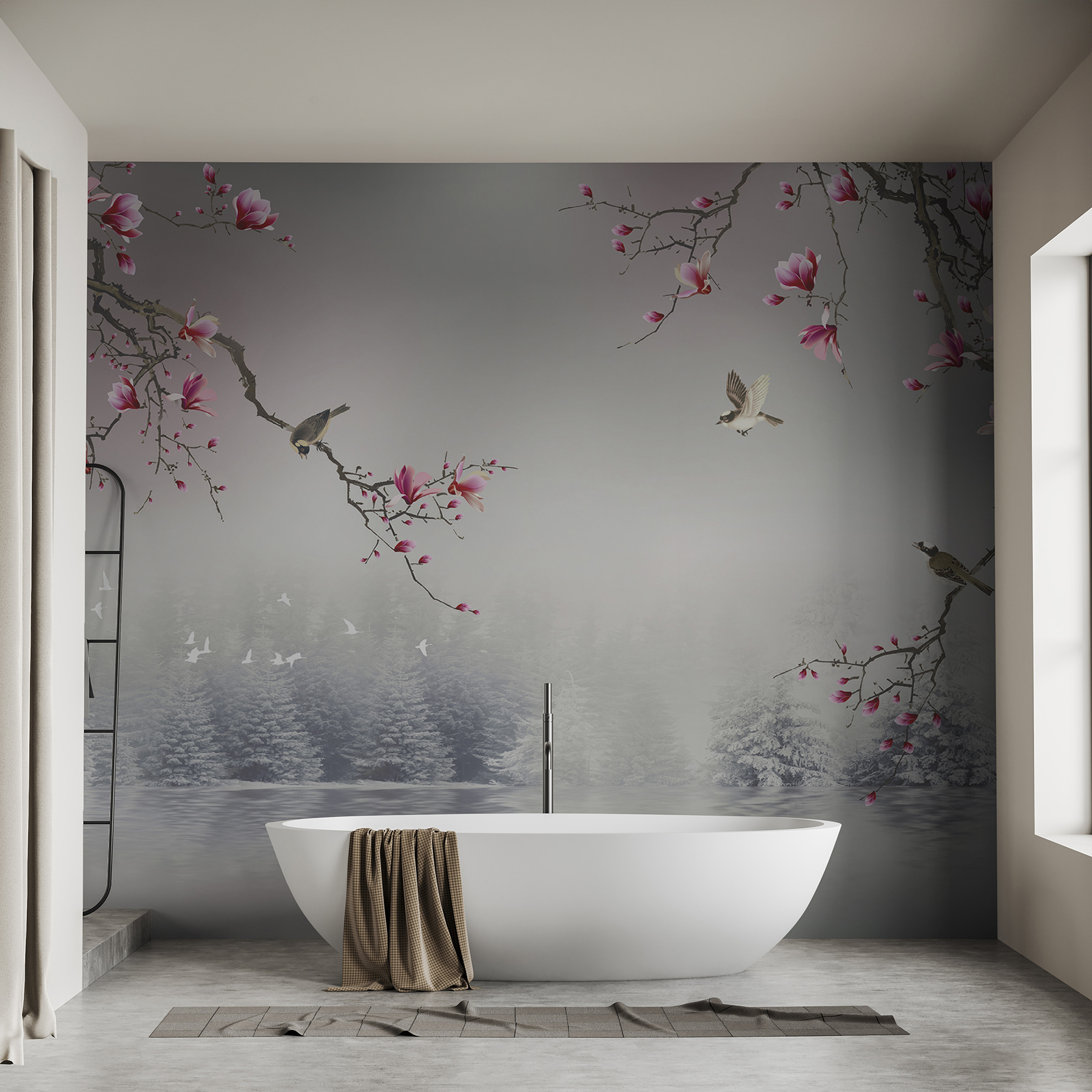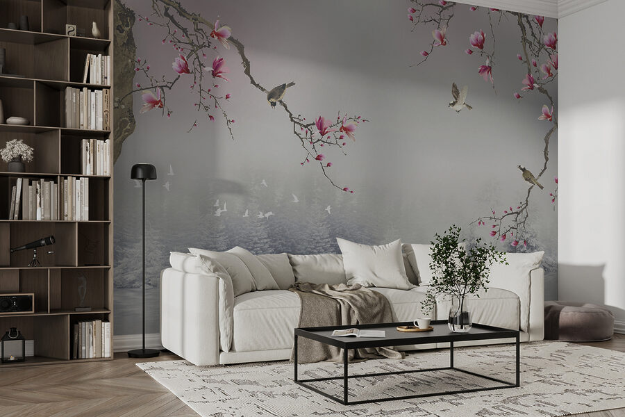 Predstavte si, že si posedíte pri šálke čaju a pozeráte sa na nástenné maľby “Vtáky a kvety nad pokojnou vodou”. Táto nástenná maľba nie je len umeleckým dielom – je to zážitok. Vtáky poletujúce okolo a kvitnúce kvety nad pokojnou vodou sú ako zasnená japonská záhrada priamo vo vašej obývačke. Takmer počujete štebotanie a cítite pokoj. Od živých kvetov až po hmlisté pozadie je to vizuálna dovolenka. Je ideálna na vyvolanie radosti a pokoja, je to začiatok konverzácie – predstavte si príbehy, ktoré by vaša stena mohla rozprávať! Jednoduchý spôsob, ako premeniť akýkoľvek priestor na zenové útočisko. 🌸🕊️