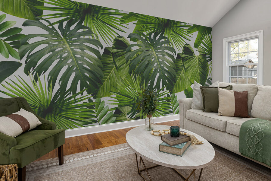 Premeňte svoj priestor na raj v džungli s nástennou maľbou Lush Green Tropical Leaves. Predstavte si to: vojdete do miestnosti a máte pocit, že ste vstúpili do slnkom zaliateho pralesa. Tieto veľké listové vzory tancujú so všetkými odtieňmi zelenej a prinášajú život a sviežosť priamo na vaše steny. Táto nástenná maľba je ideálna na doplnenie interiéru o kúsok prírody a dokáže všetko oživiť ako teplé objatie od samotnej matky prírody. Hostia sa budú cítiť okamžite uvoľnene, možno aj trochu závistlivo, keď budú nasávať sviežu atmosféru. Je to ako mať doma osobnú oázu – tak prečo nie?