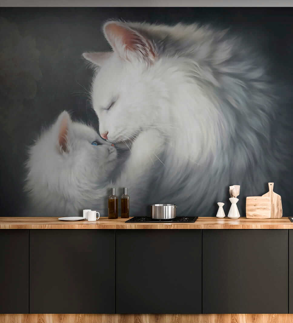Len sa pozrite na týchto dvoch chlpatých miláčikov! Táto nástenná maľba s názvom “Feline Affection at its Finest” úplne roztopí srdcia. Perfektne sa hodí do každej miestnosti, ktorá potrebuje kúsok tepla a rozmarnosti – či už je to detská izba, útulný čitateľský kútik, alebo dokonca obývacia izba. Predstavte si, že sa každý deň zobúdzate s týmto rozkošným duom mamy a mačiatka… okamžité zlepšenie nálady! A hej, kto by odolal tým mäkkým kožušinám a nežnému pritúleniu, že?