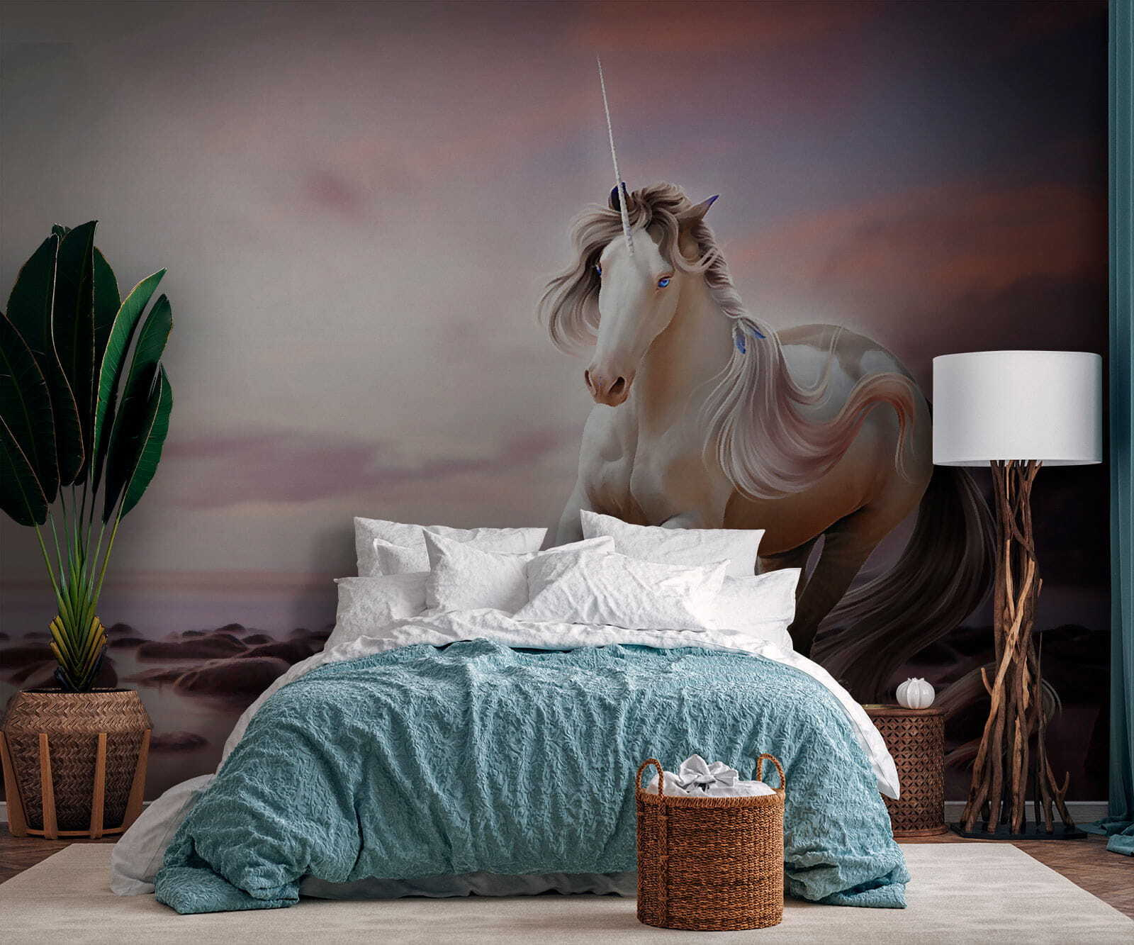 Predstavte si, že pri každom vstupe do izby vstúpite do čarovného sveta. Táto nástenná maľba “Mystický jednorožec v pokojnom západe slnka” to dokáže. Je ideálna pre každého, kto niekedy sníval o tom, že má za najlepšieho priateľa jednorožca, je to ako mať kúsok krajiny fantázie priamo doma. Jemné súmračné odtiene a pokojné morské pobrežie zachytávajú pokoj večera na pobreží, ale s prímesou kúziel – pretože kto nepotrebuje vo svojom živote trochu kúzla? Obzvlášť sa hodí do detských priestorov alebo ako rozmarný doplnok v čitateľskom kútiku. Predstavte si to: ležíte na posteli, pozeráte na tohto zasneného jednorožca a cítite sa prenesení na miesto, kde je všetko možné – presne to robí táto nástenná maľba. Prečo teda nepridať do svojho interiéru posyp rozprávkového prachu a nezlepšiť si tak každý deň o kúsok?
