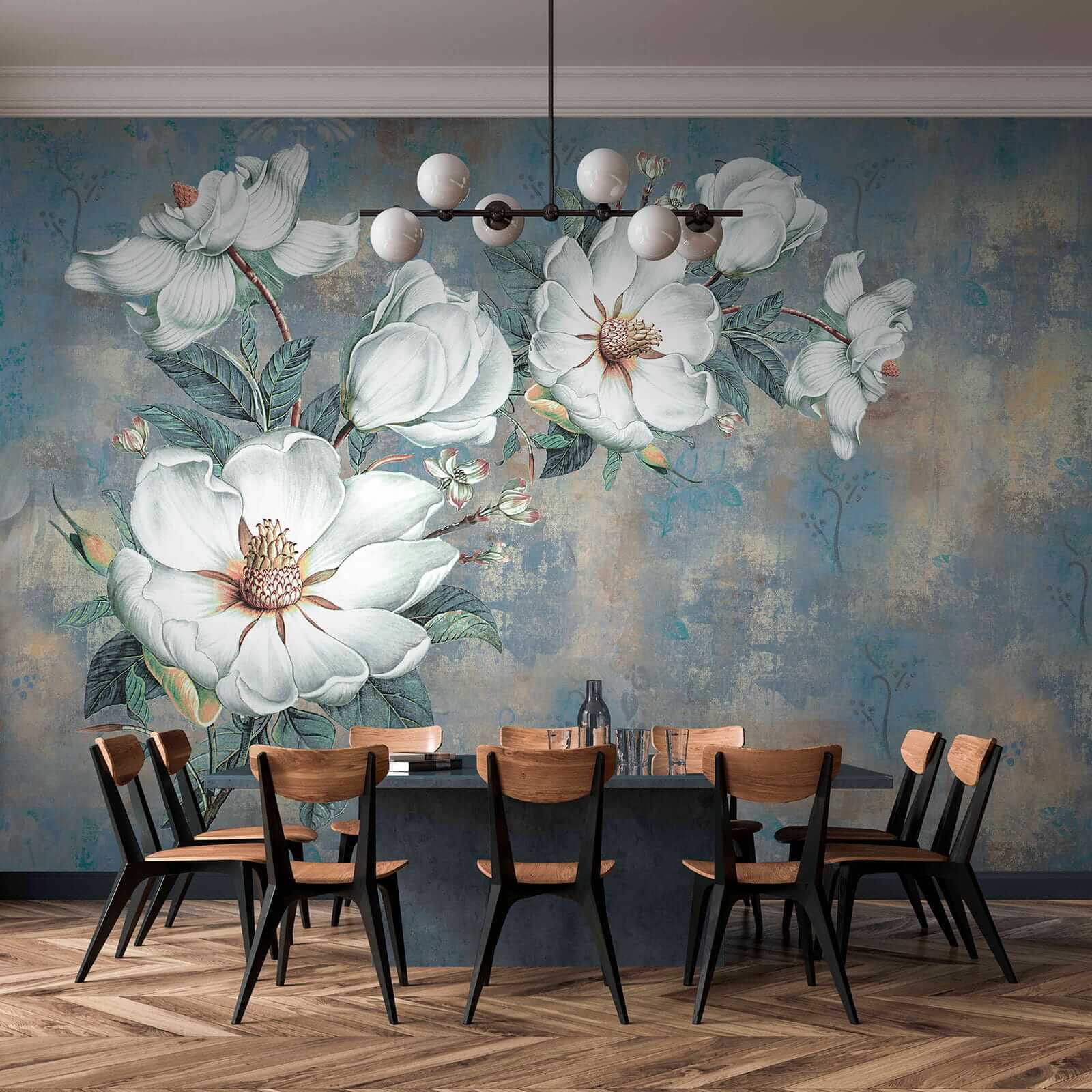 S týmito bielymi kvetmi na jemnom modrom pozadí je premena miestnosti na kvetinovú krajinu hračkou. Predstavte si, že sa zobudíte a uvidíte nádherné kvety, ktoré na vás vykukujú – je to ako mať záhradu v interiéri, len bez zalievania. Jemné tóny tejto nástennej maľby vytvárajú upokojujúcu atmosféru, ktorá je ideálna pre útulné rána so šálkou kávy alebo lenivé popoludnia s dobrou knihou. Je to elegantný spôsob, ako pridať osobnosť bez toho, aby ste to prehnali. Každý pohľad je ako malý únik do prírody, ktorý prináša na steny svieži šarm. Priatelia budú zvedaví, odkiaľ sa vzal tento rozprávkový dekor, a povedzme si úprimne, vy sa budete cítiť ako dizajnérsky čarodejník.