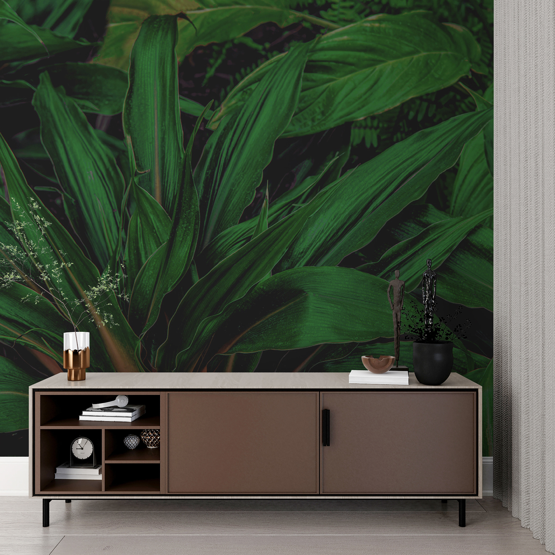 Nie je to len tapeta, je to vyhlásenie. Keď vstúpite do miestnosti vyzdobenej touto nástennou maľbou, privíta vás pocit pokoja a dobrodružstva – ako každodenná mini dovolenka. Či už je to v obývačke, kancelárii, alebo dokonca v kúpeľni, tento dizajn premení priestory na zelené úteky. Vrstvené listy dodávajú hĺbku a textúru, čím vytvárajú 3D efekt, ktorý je takmer hmatateľný. Pravdepodobne sa pristihnete pri tom, že sa tých listov budete chcieť nie raz dotknúť!