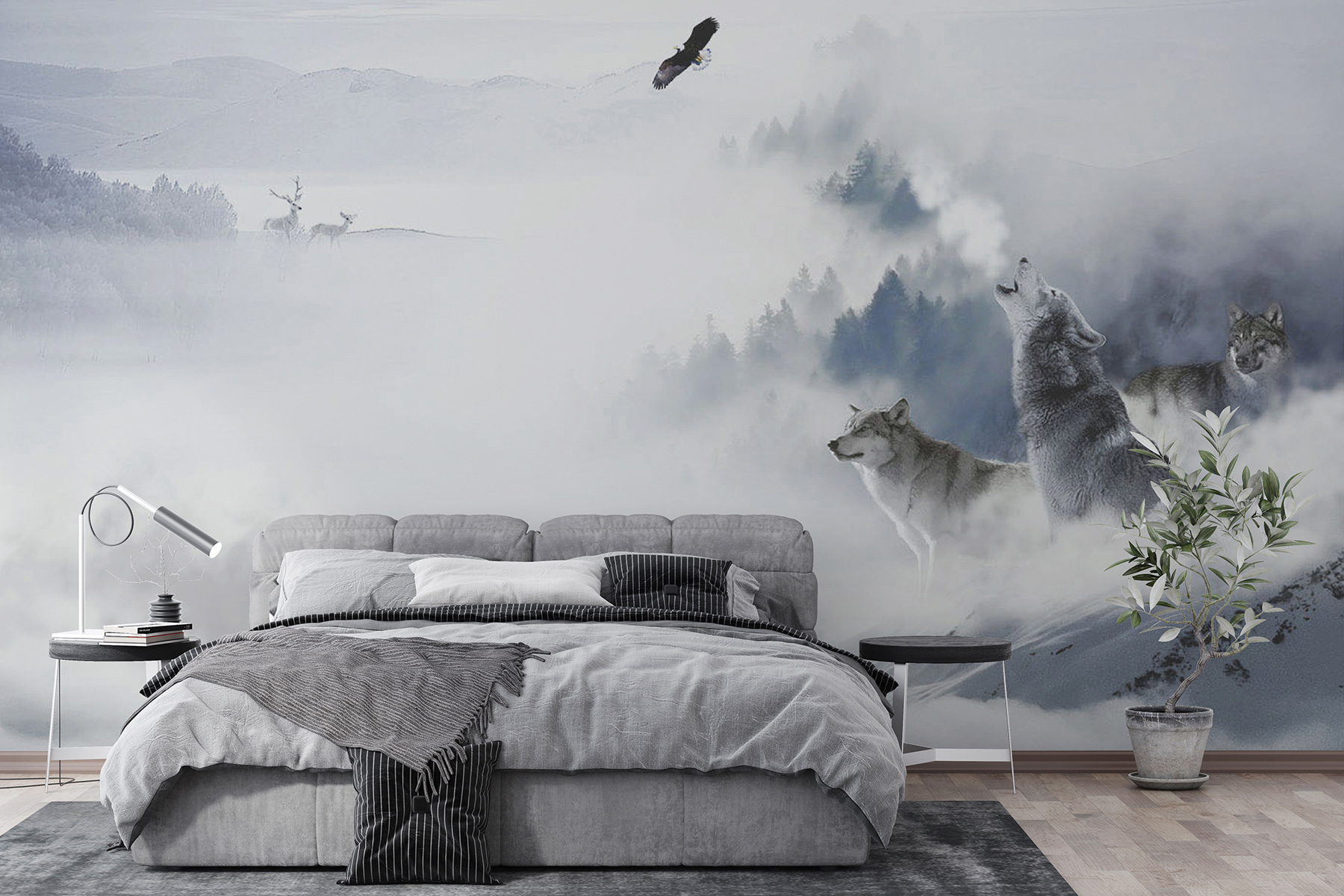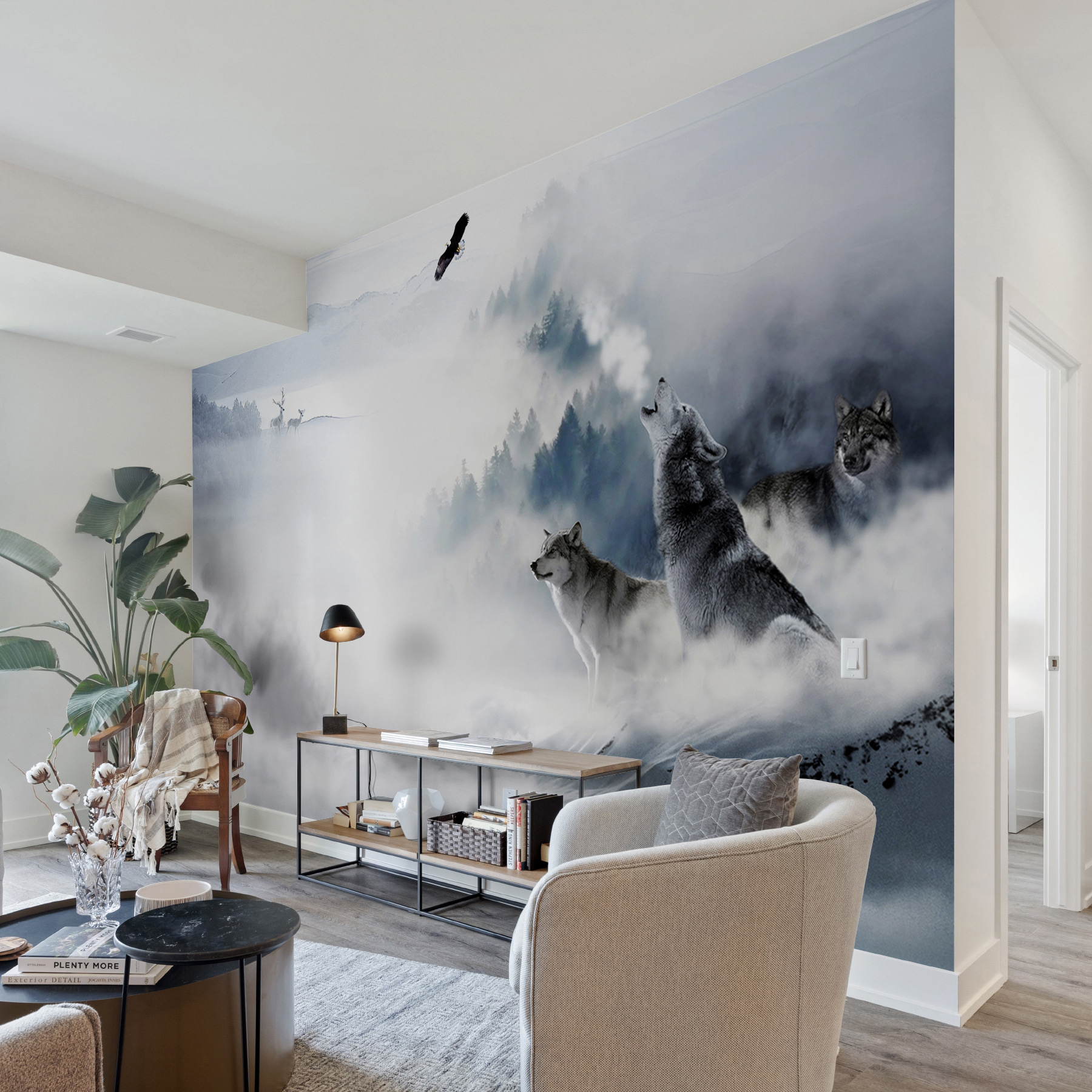 Premeňte svoj priestor pomocou tejto podmanivej nástennej maľby s vlkom, ktorý majestátne stojí na snehu. Predstavte si, že vojdete do miestnosti, kde vás obklopí neskrotný duch prírody – táto nástenná maľba to dokáže! Vďaka jemným odtieňom a pokojnému pozadiu mrazivej krajiny nabáda k snívaniu o zasnežených prechádzkach a sviežom vzduchu. Predstavte si, ako sa schúlite do klbka s dobrou knihou a šumenie divočiny je len na pohľad vzdialené. Je to ako mať kúsok divočiny priamo u vás doma, ktorá vám našepkáva tajomstvá veľkej prírody. Je to pútavé a možno vás to inšpiruje k vlastnému šepotu vlkov! Ideálny pre milovníkov prírody alebo pre každého, kto chce svojmu interiéru dodať divoký nádych.