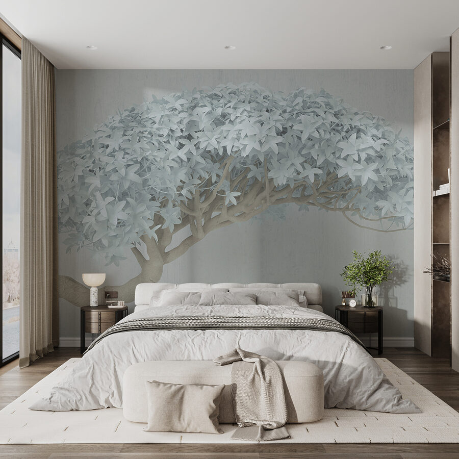 Predstavte si, že sa prechádzate po umeleckej galérii a narazíte na pokojný, zasnený výjav, ktorý je dokonale zachytený – strom s jemnými bielymi listami, ktorý sa zdanlivo vznáša nad stenou. Presne takú atmosféru vnesie do miestnosti táto nástenná maľba “Abstraktný strom s bielym lístím”. Je to ako mať kúsok jemného sna priamo na stene.