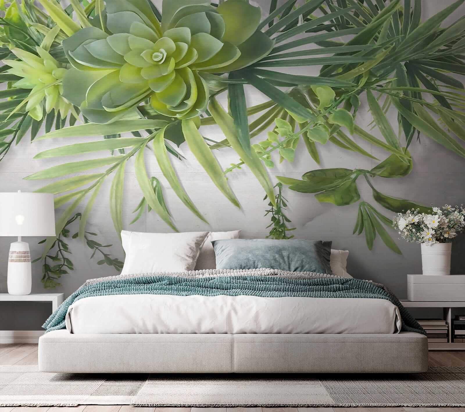 Predstavte si, že popíjate rannú kávu pod zeleným baldachýnom – bez toho, aby ste opustili obývačku! Táto “nástenná maľba Zelené sukulenty a listnaté konáre nad hlavou” premení akýkoľvek priestor na svieži, pokojný únik. Tieto žiarivé sukulenty a jemné listnaté konáre visiace nad nimi pôsobia takmer trojrozmerne. Je to ideálne na vdýchnutie kúska prírody, najmä ak máte čierny palec (nie je potrebné zalievanie!). Či už snívate o mestskej džungli v meste, alebo chcete pridať osviežujúci nádych do svojho zákutia s prírodnou tematikou – táto nástenná maľba vás dostane. Je to ako mať v sebe kúsok botanickej záhrady – bez otravných chrobákov! Okamžite dodá zen do každej miestnosti… a možno aj trochu závisti vašich priateľov.