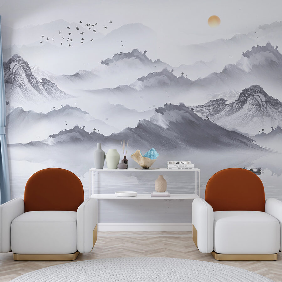 Predstavte si, že vojdete do svojej obývačky a uvidíte pokojnú krásu nástennej maľby “Strom bez listov”, ktorá zdobí vašu stenu. Je to ako vstúpiť do pokojného akvarelového sna, však? Táto nástenná maľba má tú minimalistickú atmosféru, osamelý strom hrdo stojaci medzi hmlistými horami… takmer poetické, nemyslíte?