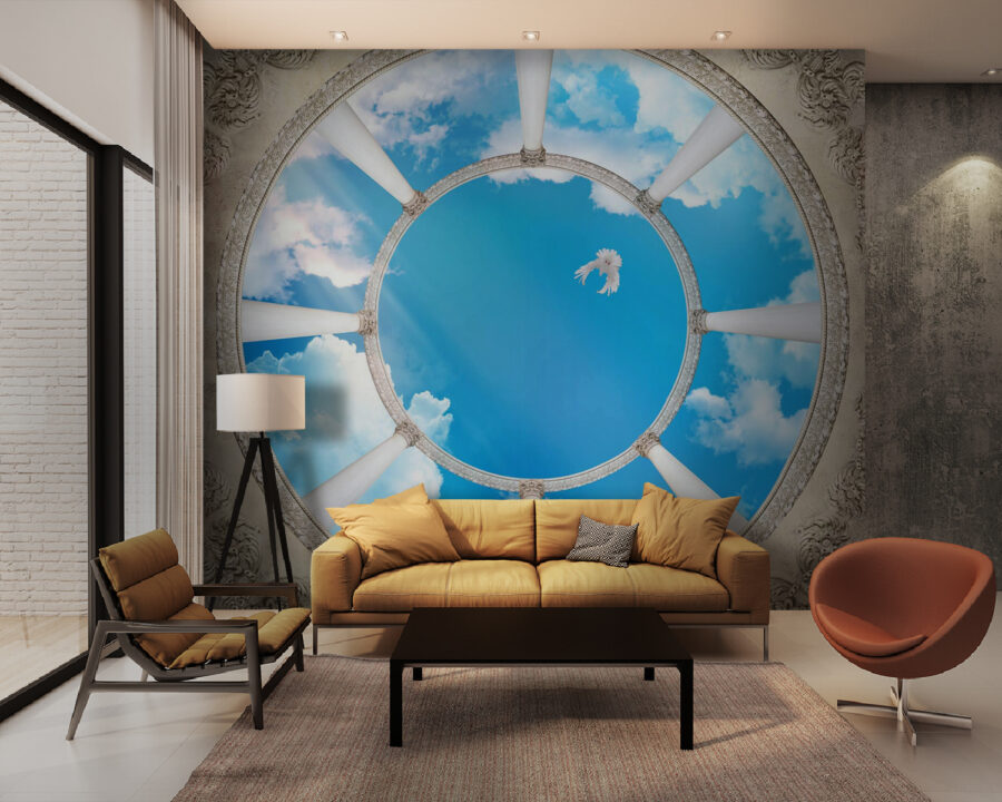 Predstavte si, že vstúpite do miestnosti, kde sa stretáva úchvatná obloha s elegantnými stĺpmi, zatiaľ čo nad vami sa vznáša vták. Táto nástenná maľba s 3D efektom okamžite premení akýkoľvek priestor na zasnený únik. Je to ako mať kúsok prírody priamo vo svojej obývačke. Priatelia sa môžu zastaviť uprostred rozhovoru, pozerať sa hore a premýšľať, či vkĺzli do veľkolepej haly alebo do pokojnej oblohy.