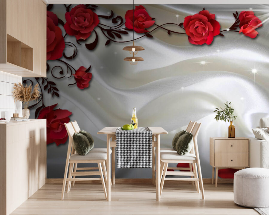 Predstavte si miestnosť, ktorá jemne šepká eleganciu, so žiarivými červenými ružami tancujúcimi na zasnenom bielom pozadí. Táto fototapeta s príznačným názvom “Fototapeta Červené ruže na hodvábne bielej látke” premení každý priestor na útulné útočisko. Sýte odtiene pozývajú na teplo a okamžite rozjasnia stenu, ktorá by sa mohla zdať príliš obyčajná. Predstavte si stretnutie s priateľmi, smiech naplňujúci vzduch, všetci priťahovaní touto výraznou nástennou maľbou. Je to ako mať záhradu v interiéri – bez zalievania. Ideálne pre tých, ktorí vo svojom interiéri oceňujú nádych romantiky a rozmarnosti. Vážne, je ťažké neusmievať sa zakaždým, keď idete okolo!