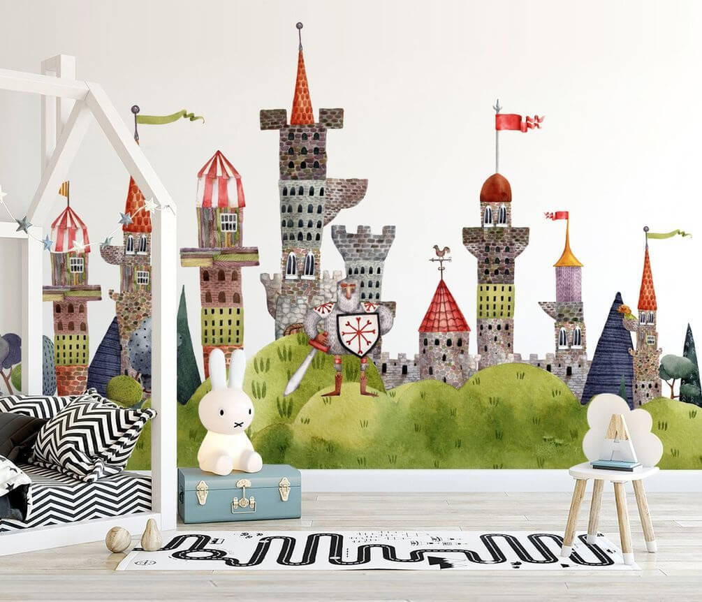 Predstavte si, ako sa vaše dieťatko každé ráno prebúdza do vlastného stredovekého kráľovstva! Statočný rytier s mečom v ruke, ktorý stráži hradné veže; je to ako mať strážcu svojich snov. A tie veže… pozrite sa na tie nepredvídateľné, farebné strechy! Vyzerajú, akoby vyskočili priamo z rozprávky.