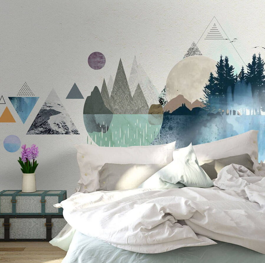 Premeňte akúkoľvek miestnosť na pokojné útočisko s tapetou „Voda a stromy v krajine“. Predstavte si, že vstúpite do priestoru, ktorý pôsobí ako pokojné lesné útočisko – samozrejme bez hmyzu! Tento ohromujúci dizajn kombinuje jemné akvarely a geometrické tvary, čím vytvára pozadie, ktoré je rovnako upokojujúce ako šumiaci potok.