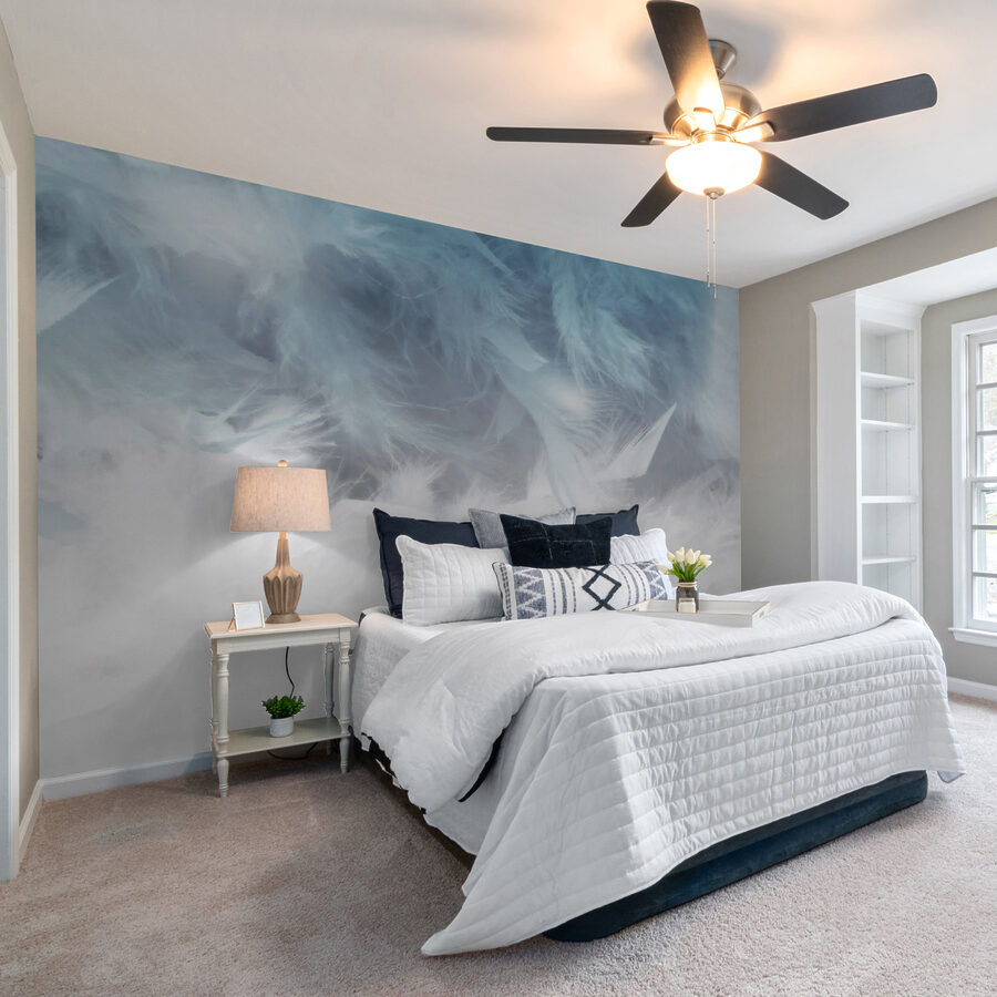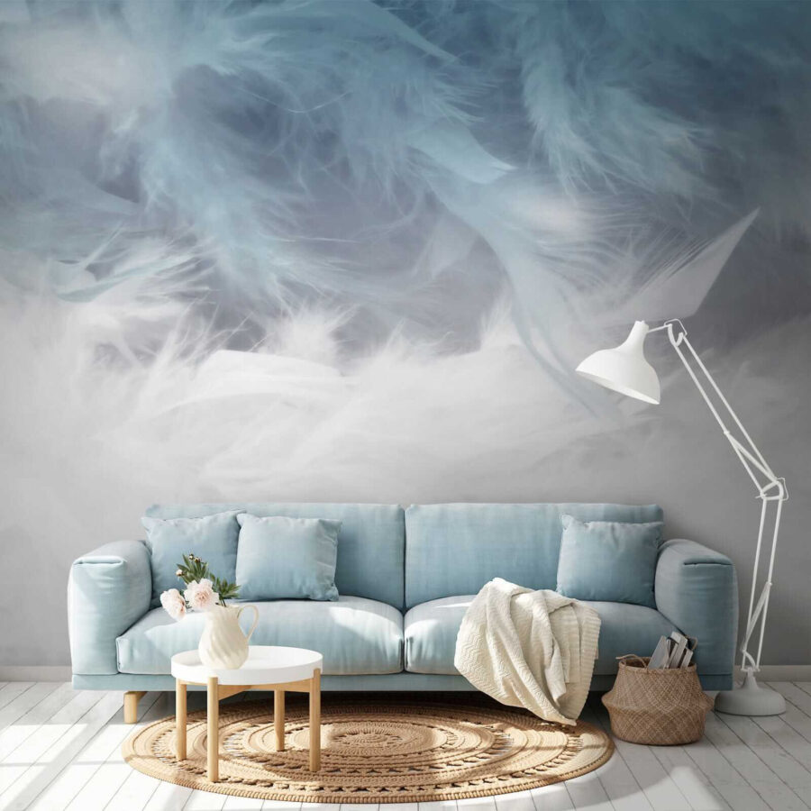 Premeňte akúkoľvek miestnosť na pokojnú oázu s nástennou maľbou “Biele perie na povrchu”. Predstavte si, že vstúpite do priestoru, ktorý je ľahký, vzdušný a trochu rozmarný. Tieto jemné pierka, jemne sa prelínajúce v odtieňoch bielej a bledomodrej, vytvárajú pokojnú atmosféru, ako keď jemný vánok šepká medzi stromami.