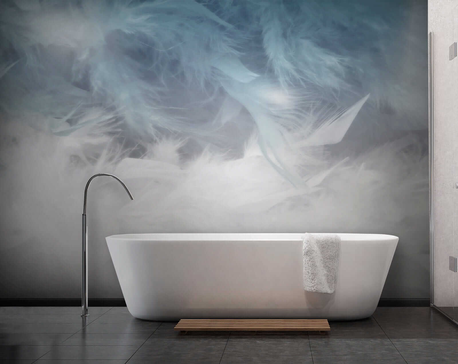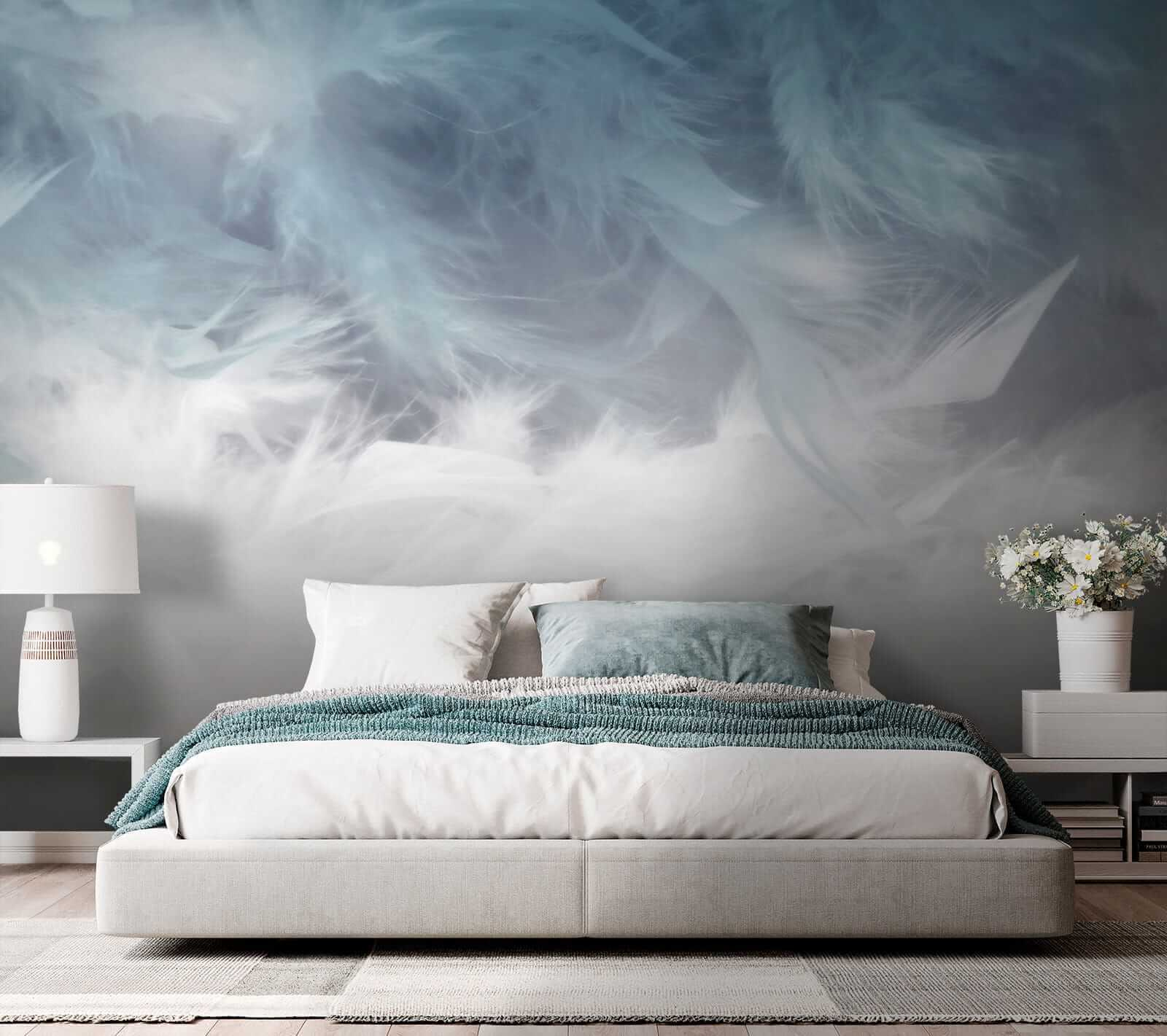 Premeňte akúkoľvek miestnosť na pokojnú oázu s nástennou maľbou “Biele perie na povrchu”. Predstavte si, že vstúpite do priestoru, ktorý je ľahký, vzdušný a trochu rozmarný. Tieto jemné pierka, jemne sa prelínajúce v odtieňoch bielej a bledomodrej, vytvárajú pokojnú atmosféru, ako keď jemný vánok šepká medzi stromami.