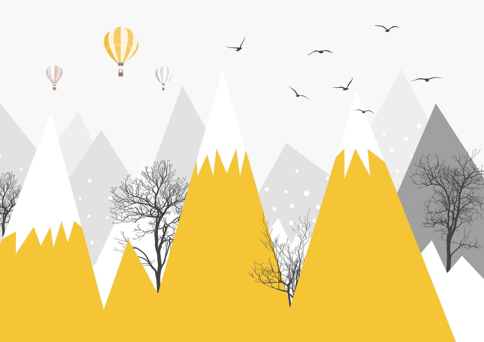 Premeňte akúkoľvek miestnosť na veselé útočisko s „nástennými maľbami Žlté hory so stromami a vtákmi“. Predstavte si, že sa prebudíte s výhľadom na tieto žiarivé žlté vrcholy – ako jasný východ slnka, ktorý nikdy nekončí. Hravé teplovzdušné balóny vznášajúce sa nad nimi dodávajú dobrodružný nádych a vtáky? Tie pridávajú ten správny náznak fantázie. Je to ako dekorácia s trochou kúzla prírody. Či už ide o detskú izbu alebo útulný kútik na čítanie, táto tapeta vytvára príjemný priestor, ktorý podnecuje fantáziu. Kto by sa nechcel stratiť vo svete, kde hory vždy usmievajú? Zaveste ju, sadnite si a nechajte dobrodružstvo začať!