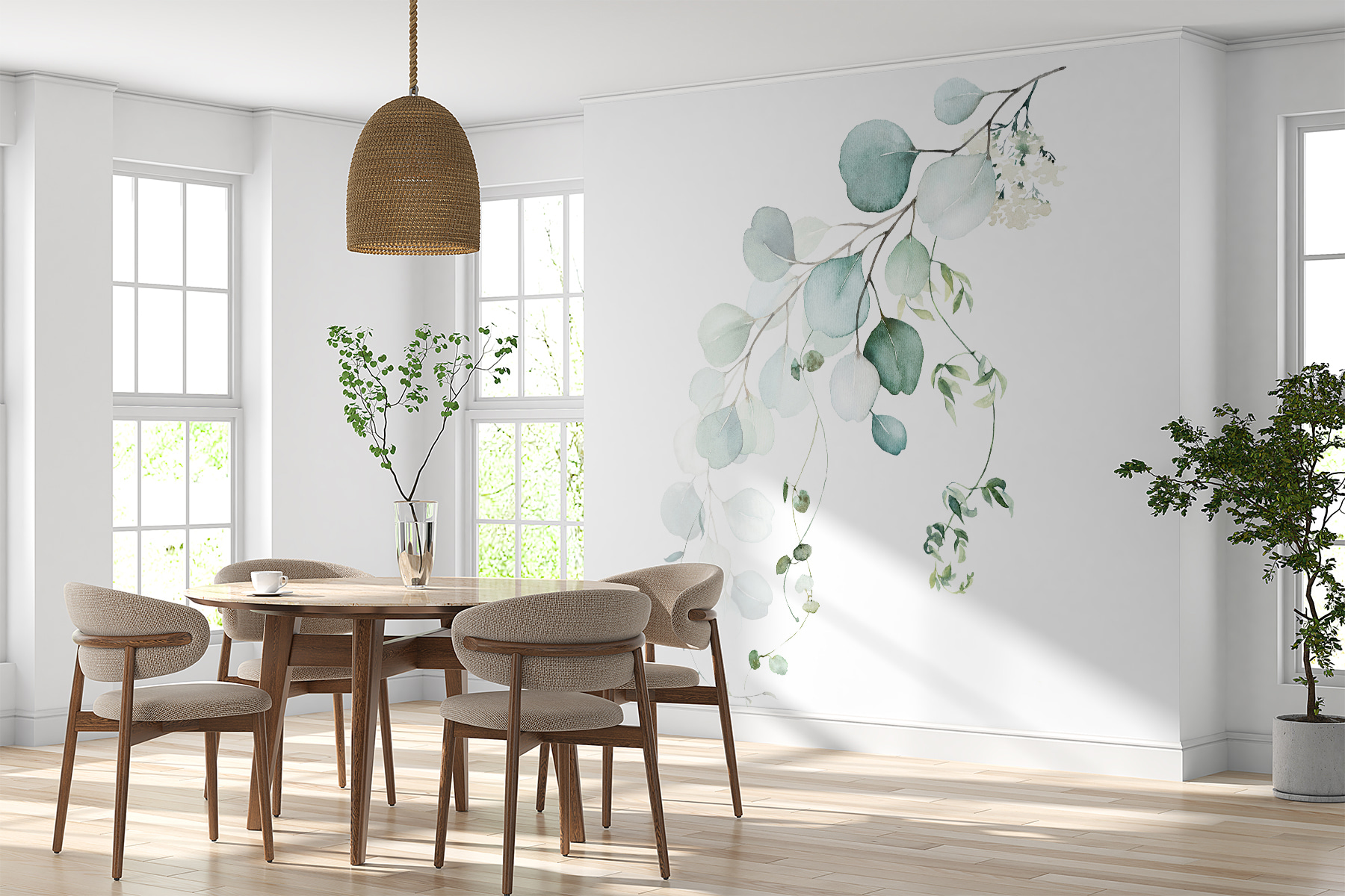Predstavte si, že vstúpite do priestoru, kde vám príroda jemne šepká do ucha. Táto nástenná maľba s jemnou akvarelovou zeleňou je ako závan čerstvého vzduchu pre každú miestnosť. Jemná zelená a biela dokážu okamžite rozjasniť náladu, vďaka čomu sa aj ten najútulnejší kút bude cítiť o niečo otvorenejší a prívetivejší. Je ideálny pre situácie, keď steny potrebujú oživenie. Predstavte si, ako popíjate čaj, keď dovnútra prúdi slnečné svetlo a vrhá na podlahu hravé tiene týchto listových vzorov. Je to ako preniesť kúsok vonkajšieho prostredia dovnútra – samozrejme, bez hmyzu – a kto by to nechcel? Táto nástenná maľba, ktorá sa dokonale hodí do obývačky alebo do čitateľského kútika, bez námahy dodáva nádych elegancie a pokoja. Jemne pripomína, že príroda je vždy len na skok.