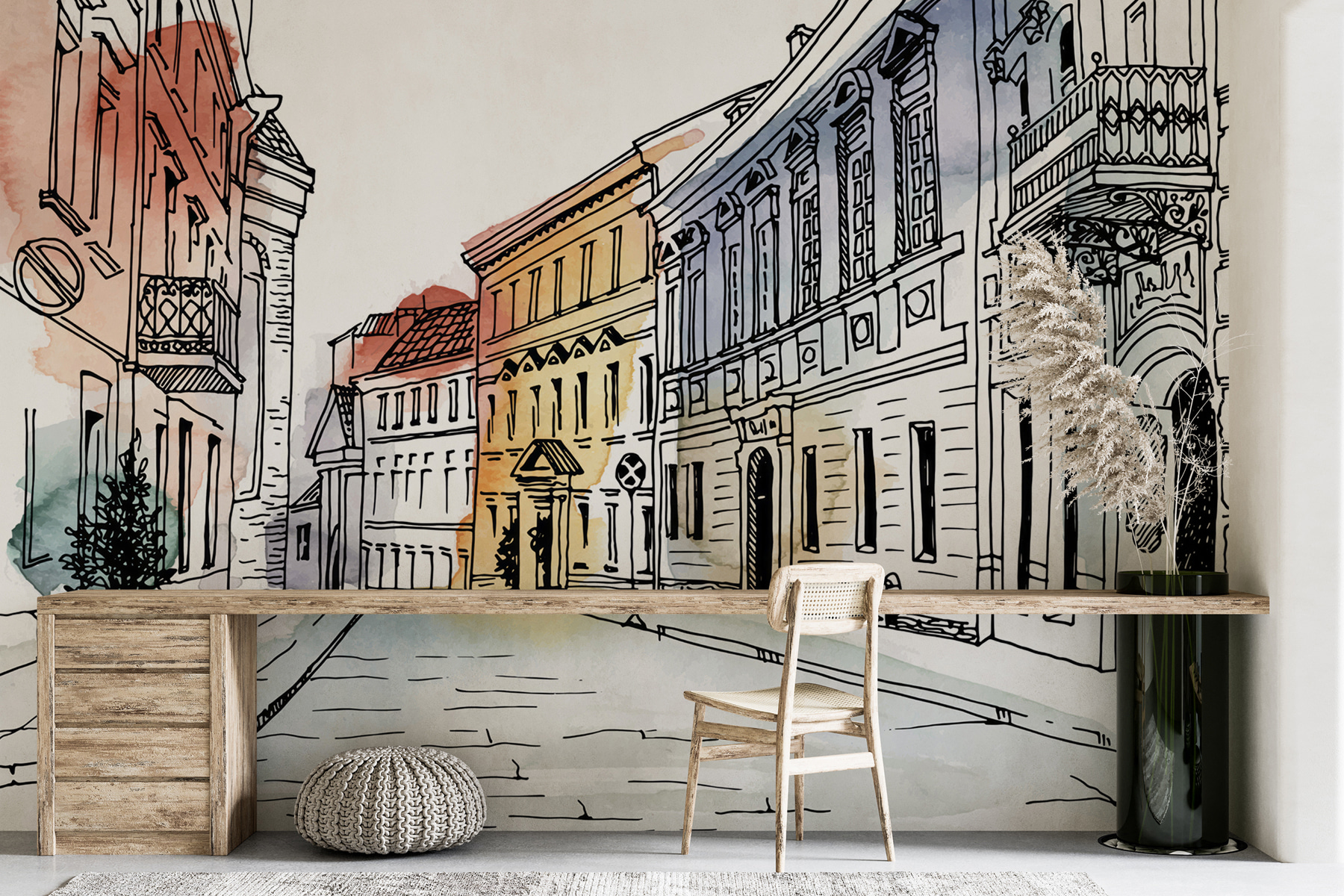 Predstavte si toto: vojdete do svojej obývačky a bác!- okamžite sa prenesiete na pôvabnú európsku ulicu. Táto “nástenná maľba Kresba budovy” prináša nádych starosvetskej architektúry a elegancie priamo na vaše steny. Táto nástenná maľba, vytvorená pre milovníkov krásnych vzorov a jedinečných priestorov, vás pozýva na potulky tými dláždenými uličkami, kedykoľvek sa na ne pozriete. Potrebujete podnet na konverzáciu? Tu je. Vaši hostia sa možno jednoducho stratia v zložitých líniách a jemných škvrnách akvarelu. Perfektne sa hodí na to, aby dodal každej miestnosti útulnú a zároveň sofistikovanú atmosféru. Je to ako mať doma minidovolenkové miesto – bez časového posunu. Oveľa lepšie ako obyčajná farba, nemyslíte?