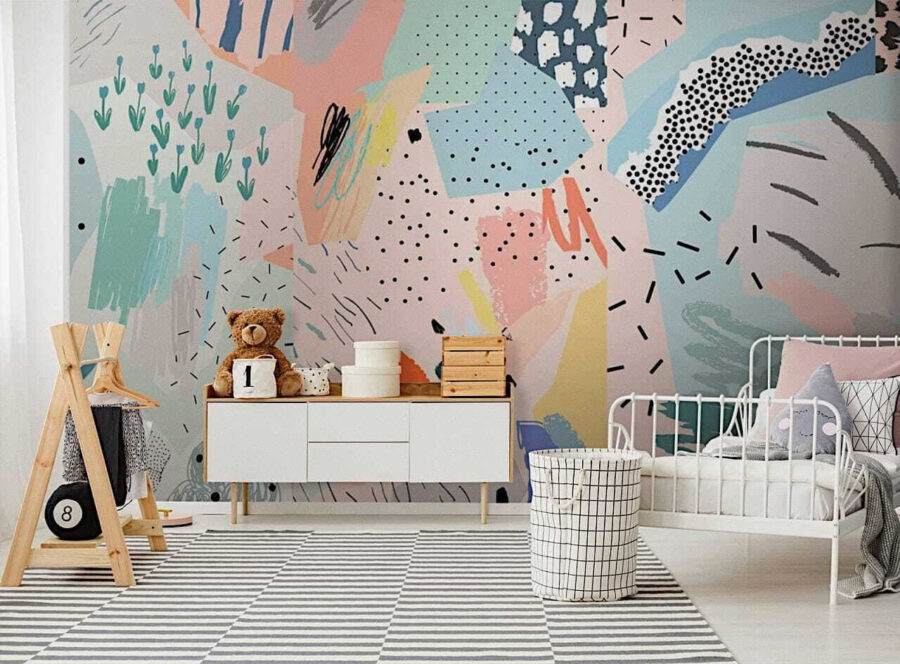 Máte detskú izbu, ktorá potrebuje kúzlo? Pozrite si túto farebnú abstraktnú nástennú maľbu – je ako hravá patchworková deka na stenách. Nájdete na nej striekance jemných pastelových farieb zmiešaných s odvážnejšími kúskami; drobné farebné odlesky a nepredvídateľné tvary sú priam rozprávkové. Predstavte si, ako sa fantázia vášho dieťatka rozvíja pri pohľade na všetky tieto zábavné vzory! Je to akoby na stene vybuchla rozprávková kniha – tým najlepším možným spôsobom.