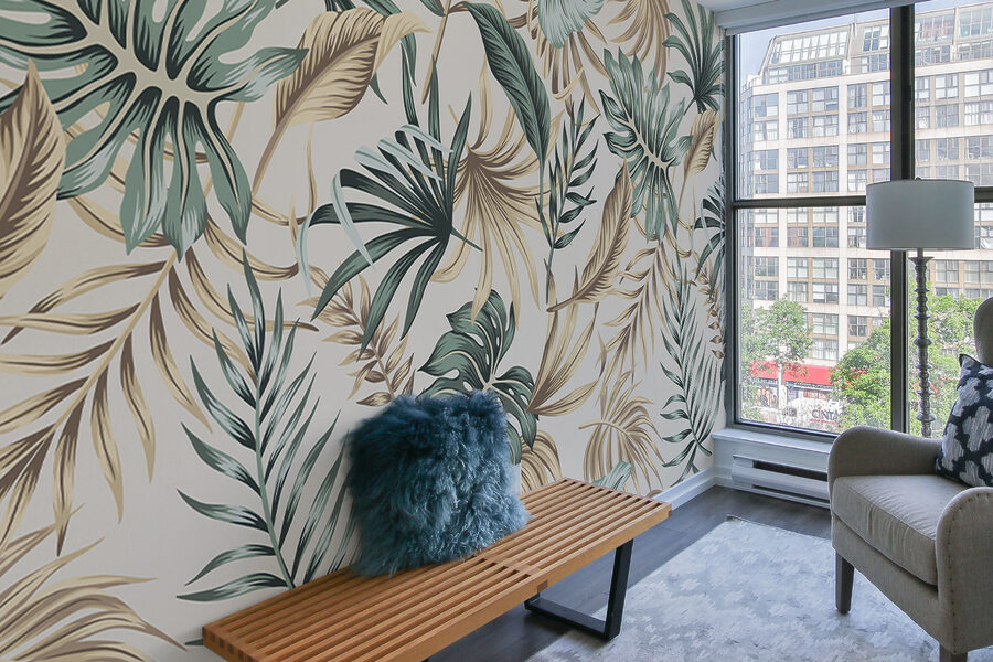 Premeňte svoj priestor pomocou tejto nádhernej nástennej maľby tropických listov na upokojujúcom béžovom pozadí. Predstavte si, že vstúpite do svojej izby a budete mať pocit, že ste sa zatúlali do pokojného útočiska v džungli. Táto svieža zeleň vystupuje na pozadí jemného plátna a vytvára atmosféru, ktorá upokojuje a zároveň dodáva energiu. Ideálne sa hodí do obývačky, spálne alebo aj do útulného čitateľského kútika, kde vyzýva na závan čerstvého vzduchu. Priatelia sa budú čudovať, že ste si najali dekoratéra, ale v skutočnosti ste to len vy a váš skvelý vkus, ktorý z každého kúta urobí malý raj. Tak na čo ešte čakáte? Ponorte sa do lístia!