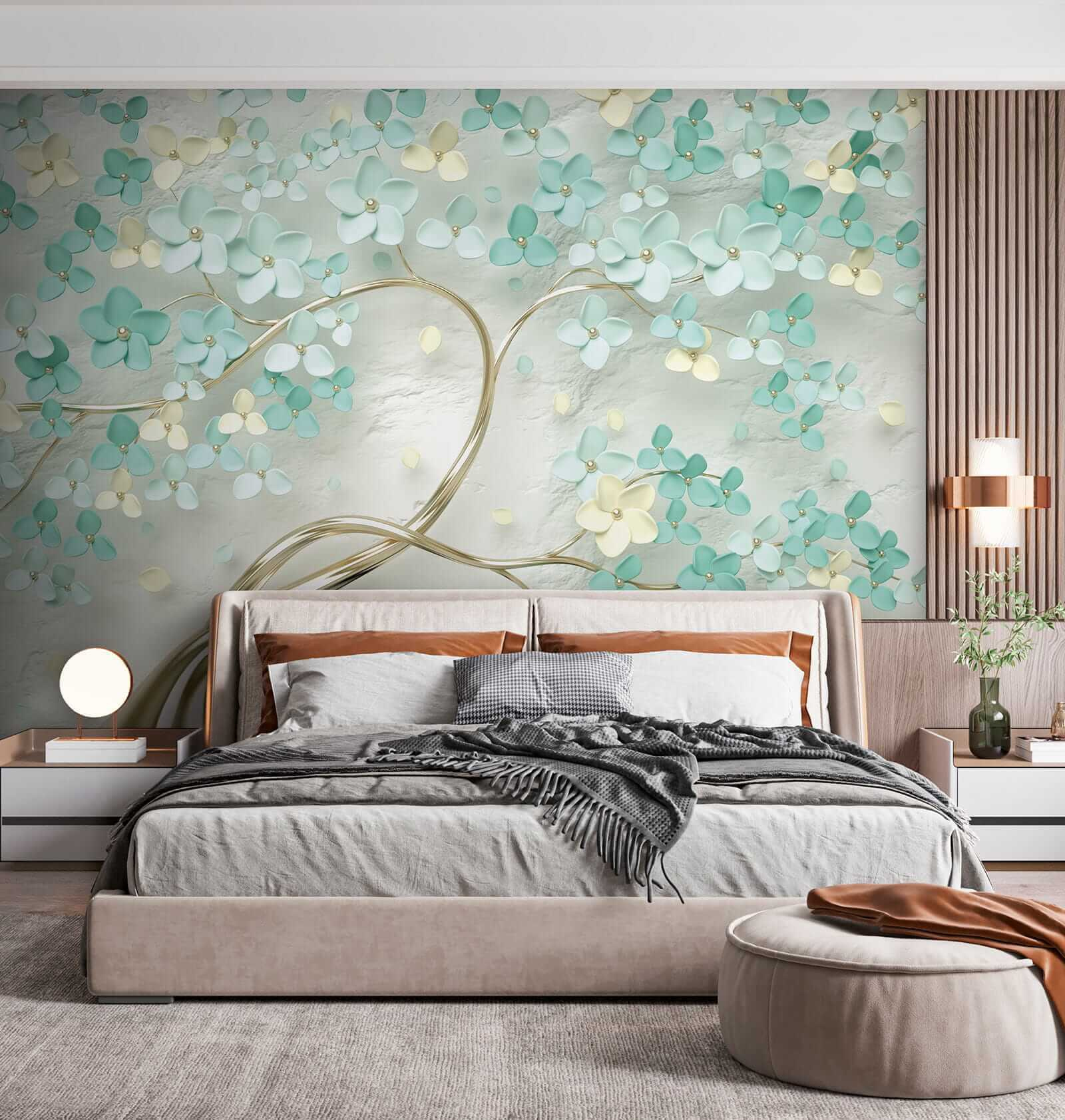 Premeňte každú miestnosť pomocou tejto úžasnej nástennej maľby, na ktorej jemné kvety tancujú na mäkkom pozadí. Predstavte si, že vstúpite do slnkom zaliatej záhrady, kde vás jemne objímajú upokojujúce farby tyrkysovej a krémovej. Je to ako priniesť závan jari do interiéru – bez potreby zalievania! Táto nástenná maľba nielenže dodáva šarm, ale vytvára aj pokojnú atmosféru, ktorá našepkáva relaxáciu. Predstavte si, že pred ňou popíjate rannú kávu a cítite, ako vás oblieva pokoj, alebo si vytvoríte útulný priestor na čítanie do neskorých nočných hodín. Tak prečo nenechať svoje steny rozkvitnúť?
