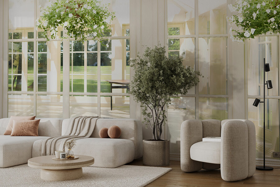 1 recenzia k Fototapety Slnkom osvetlená miestnosť so závesnými rastlinami