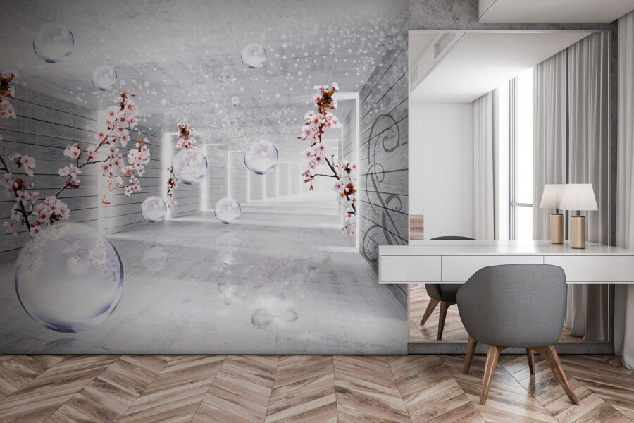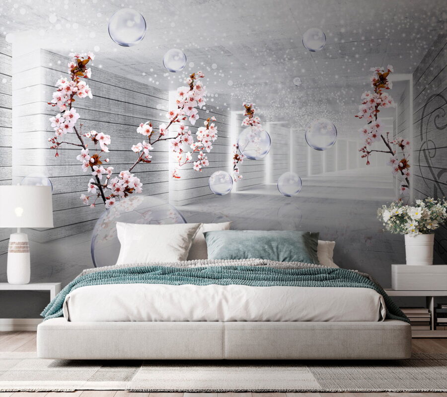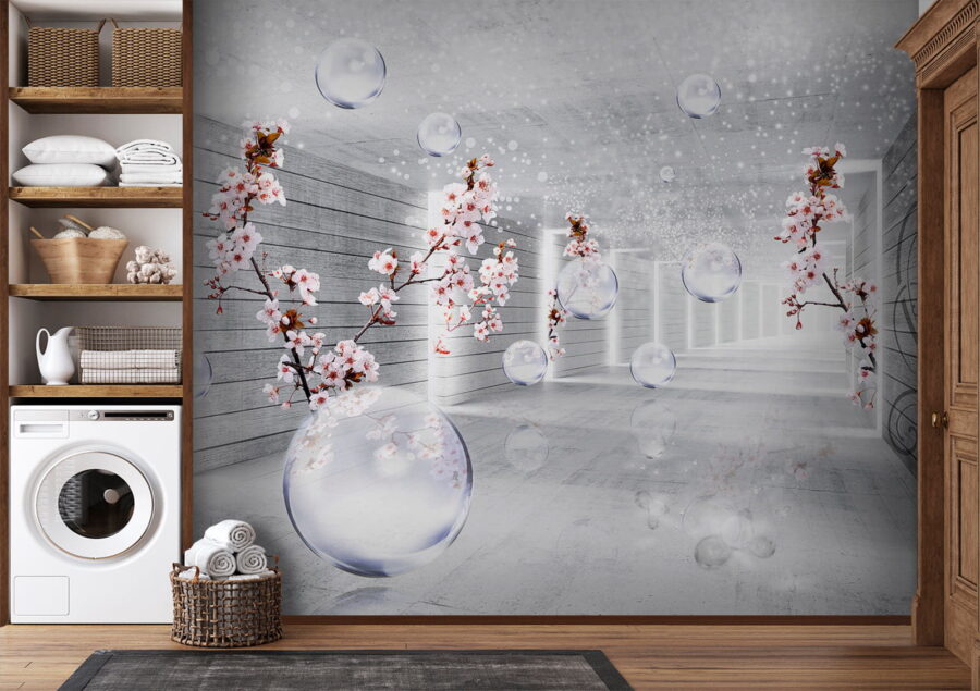 Premeňte svoj priestor s tapetou „Biela izba s kvetmi a bublinkami“. Predstavte si to: jemné okvetné lístky a vznášajúce sa bublinky sa miešajú v pokojnej atmosfére a okamžite zlepšujú náladu. Je to ako vstúpiť do sna! Táto tapeta prináša nával sviežosti a oživuje každú miestnosť, akoby práve zaklopala jar na vaše dvere. Predstavte si, ako popíjate rannú kávu a hľadíte na tieto kvety, ktoré nikdy nezvädnú! Jemné odrazy svetla vytvárajú pokojnú atmosféru, ideálnu na relax po dlhom dni. Či už ide o obývačku, spálňu alebo útulný kútik, táto tapeta dodá eleganciu a náznak fantázie. Tak neváhajte a nechajte svoje steny trochu prehovoriť!
