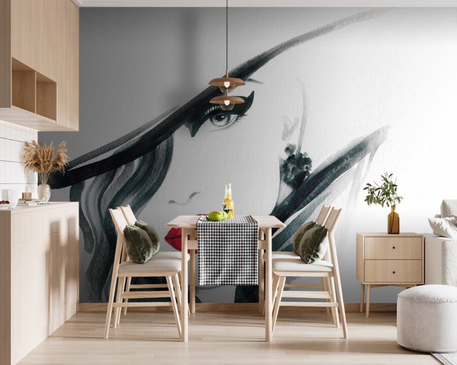 Predstavte si to – elegantná tajomná žena, ktorej výrazné červené pery pôsobia, akoby vošla do miestnosti plnej šepotu. Táto nástenná maľba “Elegantná žena s odvážnymi červenými perami” nie je len dekoráciou, je to ako mať na stene sofistikovaného, sebavedomého priateľa. Má túto modernú, elegantnú atmosféru, ktorá sa hodí do každého elegantného priestoru. Predstavte si tie večery, keď leňošíte s pohárom vína a ona vám tam dodáva šmrnc, vďaka ktorému sa budete cítiť ako súčasť nejakej honosnej scény priamo z klasického filmu. Čiernobiely kontrast s červenou farbou je čisté kúzlo, nápadné a zároveň vkusné. Perfektne sa hodí do obývačky, spálne alebo dokonca do štýlovej kancelárie – viete, kde chcete mať trochu wow faktora. Či už premýšľate o dramatickom ústrednom bode, alebo sa vám len páči myšlienka sofistikovaného dekoru, táto nástenná maľba vnesie do každej miestnosti jedinečnú osobnosť a bez námahy spojí eleganciu s trochou hrany.