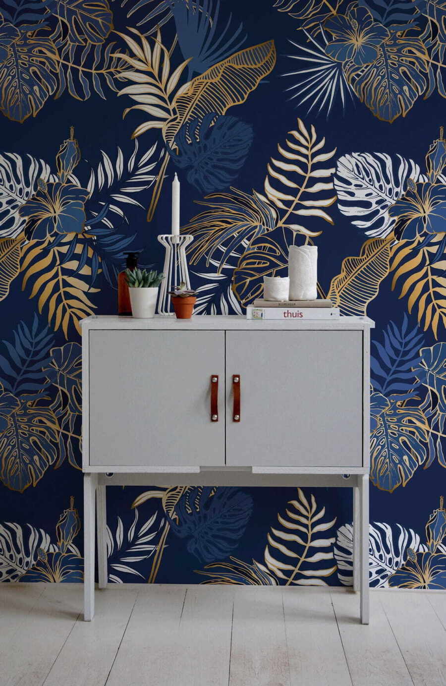 Premeňte akýkoľvek priestor na tropický raj pomocou tejto úžasnej nástennej maľby so vzorom listov na sýtom modrom pozadí. Je to ako preniesť si kúsok prírody priamo do svojho domova. Predstavte si, ako popíjate kávu obklopení sviežou zeleňou a živými vzormi – hovoríme o okamžitom zlepšení nálady! Vďaka hravej zeleni nástenná maľba nabáda k hrejivosti a pocitu pokoja, čo je ideálne pre relaxačné vibrácie. Len si predstavte, že hostíte priateľov; pri pohľade na túto jedinečnú výzdobu budú húkať a húkať. Premyslený doplnok do spálne, obývačky alebo dokonca do útulného čitateľského kútika – táto nástenná maľba je pripravená prebudiť vášho vnútorného milovníka prírody. Neváhajte a nechajte steny nadýchať sa čerstvého vzduchu!