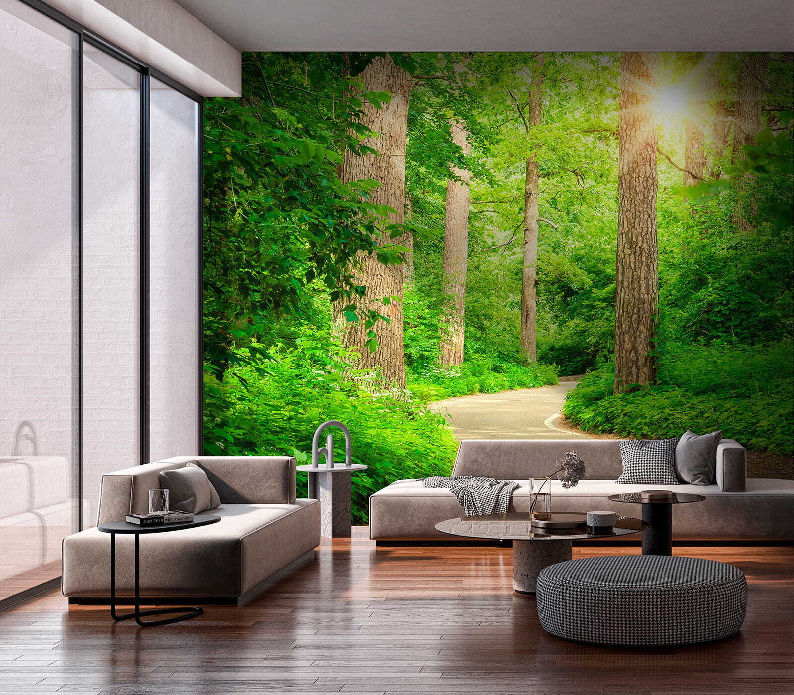 Premeňte svoj priestor na pokojnú krásu “Slnečného svetla cez svieži zelený les”. Predstavte si prechádzku pokojným lesom, kde slnečné svetlo preniká cez žiarivé listy a vytvára na zemi kvapkovité vzory. Táto nástenná maľba nie je len dekoráciou na stenu, je to pozvánka na ľahšie dýchanie. Svieža zeleň a teplé svetlo prinášajú pocit pokoja a zároveň vyvolávajú sny o prechádzkach prírodou a skrytých chodníkoch. Je ideálny pre útulné zákutia alebo pre tú jednu stenu, ktorá potrebuje trochu viac lásky, a dodáva jej nádych života, ktorý určite rozžiari každú miestnosť. Obklopte sa krásou prírody priamo u vás doma!