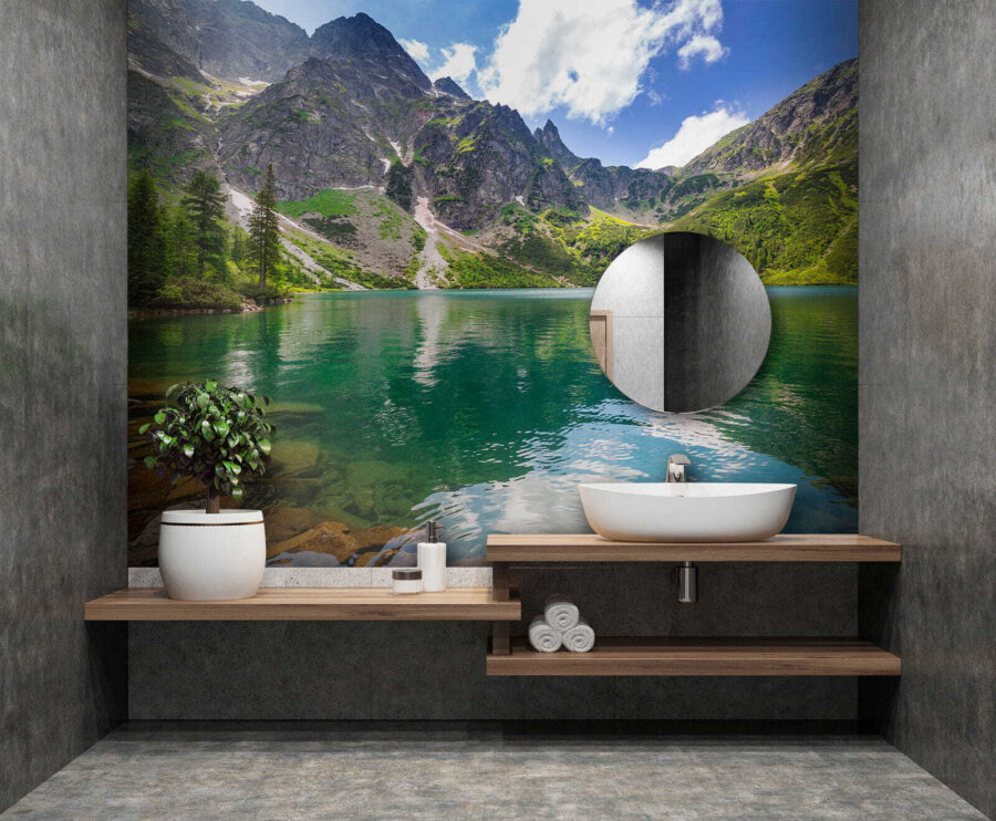 Premena priestoru pomocou tejto nástennej maľby “Horské jazero odráža jasnú oblohu” je ako pozvanie prírody priamo do miestnosti. Predstavte si to: pokojné jazero obklopené majestátnymi horami, kde voda odráža žiarivo modrú oblohu – je to takmer ako výjav zo sna! Predstavte si, že popíjate kávu alebo sa schúlite s knihou pri pohľade na tento upokojujúci výhľad. Dodá vám nádych pokoja, ktorý je ideálny pre chvíle, keď sa vám život zdá trochu hektický. Navyše je to skvelý začiatok konverzácie – kto by sa nechcel rozprávať o krásnom úteku? Povedzme, že vďaka nemu vaše steny ožijú a každý deň vás vezmú na mini útek. Prečo nenechať túto prírodnú atmosféru vytvoriť útulnú atmosféru aj u vás doma?