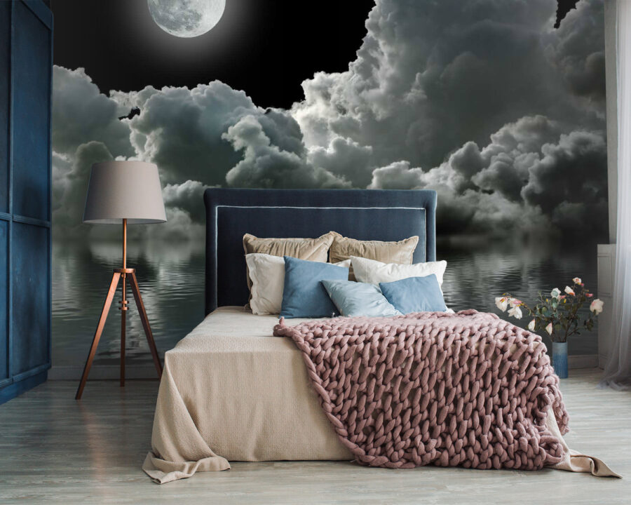 Premeňte akúkoľvek miestnosť na rozprávkové útočisko s touto ohromujúcou nástennou maľbou, na ktorej je mesiac nad vodou zahalený v nadýchaných oblakoch. Je to ako priniesť kúsok nočnej oblohy dovnútra! Predstavte si, ako ležíte na gauči, popíjate čaj a tento pokojný výhľad vás víta. Jemné odrazy vo vode priťahujú pohľad a vytvárajú pokojnú atmosféru, ideálnu na oddych po dlhom dni. A kto by nemiloval mesačnú scenériu, ktorá vo vás vyvoláva poetické pocity? Hostia sa možno dokonca opýtajú, či sa náhodou neocitli v útulnej umeleckej galérii – nie je to skvelé? Táto tapeta nie je len dekoráciou, je to scéna, ktorá pozýva k sneniu, šepká príbehy a dodáva vášmu priestoru kúsok kúzla.