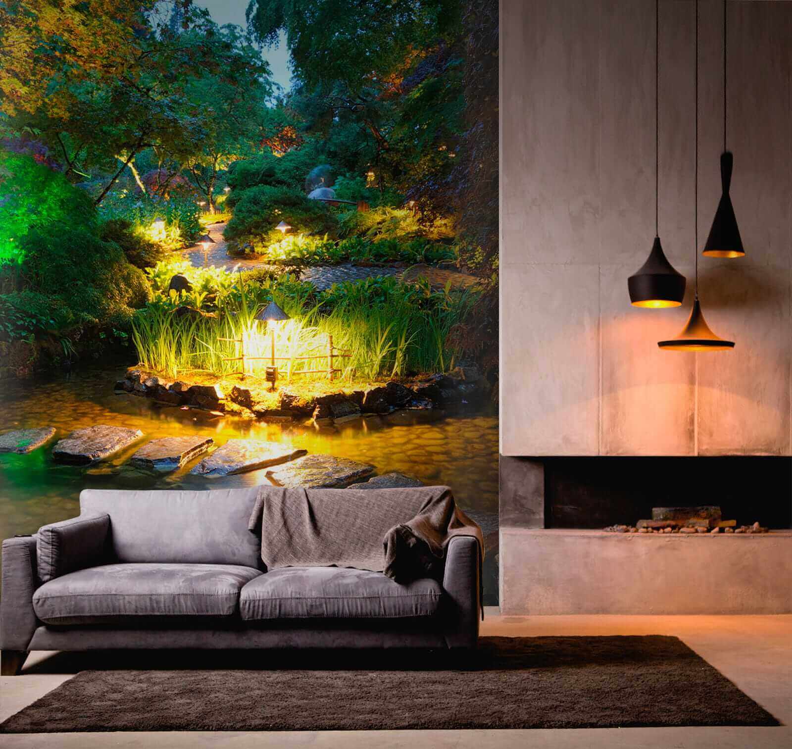 Premeňte akýkoľvek priestor s očarujúcou „nástennou maľbou Kamenná cestička v rybníku so svetlami“. Predstavte si, že vstúpite do pokojného útočiska priamo zo svojej obývačky! Táto nástenná maľba vás obklopí upokojujúcimi odtieňmi a jemne sa lesknúcimi svetlami, vďaka čomu budete mať pocit, ako keby ste sa prechádzali po skrytej záhrade za súmraku.