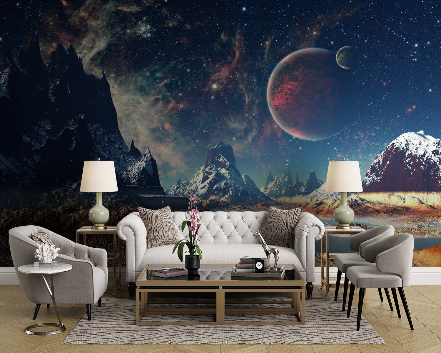 Premeňte akýkoľvek priestor pomocou tejto ohromujúcej horskej nástennej maľby, kde sa zasnežené vrcholy stretávajú s hviezdnym vesmírnym pozadím. Predstavte si, že vstúpite do miestnosti, ktorá bude pripomínať dobrodružstvo, kde každý pohľad do hôr vyvolá sny o objavovaní neprebádaných svetov. Tento kúsok prináša pocit úniku priamo na vaše steny, akoby ste sa pri popíjaní rannej kávy pozerali na vzdialené galaxie. Je to ten druh dekoru, ktorý nielen skrášľuje, ale aj inšpiruje. Perfektne sa hodí do útulného kúta alebo na stenu, ktorá jednoducho potrebuje trochu viac lásky. Nech sa váš domov cíti ako portál do výnimočného miesta.