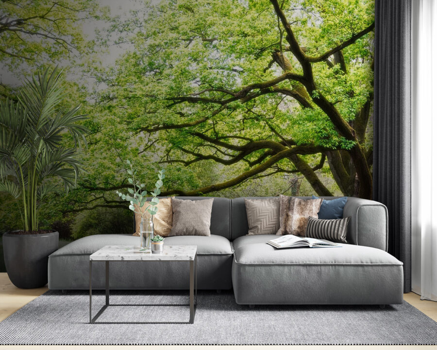 Táto nástenná maľba dokáže miestnosť opticky zväčšiť, rozjasniť a oživiť. Možno je to tými sviežimi listami alebo zasneným spôsobom, akým sa konáre tiahnu cez celý priestor – kto vie? Jedno je však isté: vnáša do interiéru atmosféru vonkajšieho prostredia. Ideálne pre každého, komu chýba les, ale nemôže sa vždy dostať preč. Navyše sa krásne kombinuje s dreveným nábytkom, útulnými kobercami a šálkou horúceho čaju.