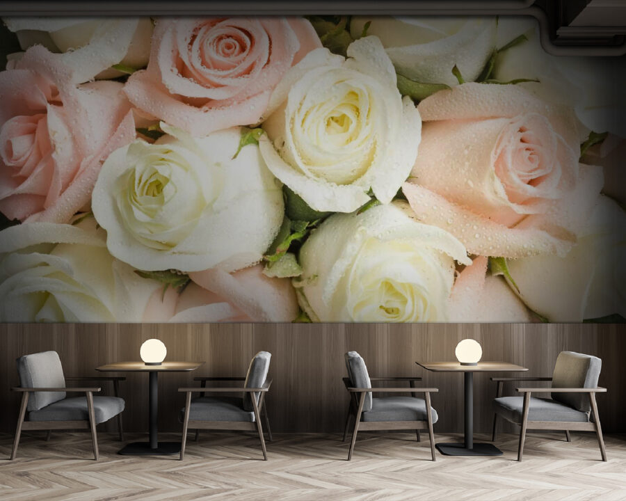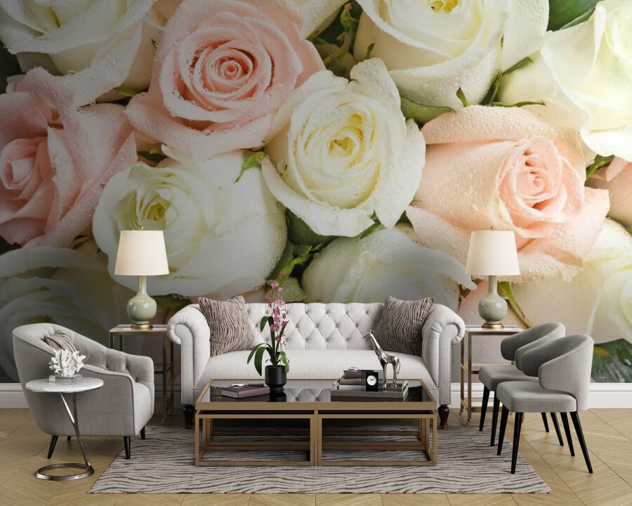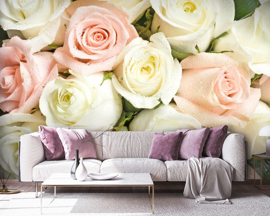 Premeňte svoj priestor s touto úžasnou nástennou tapetou s nádhernou kombináciou ružových a bielych ruží. Predstavte si, že vstúpite do miestnosti a privíta vás kvetinový šarm, ktorý pripomína záhradnú párty – bez potreby polievacích kanvíc! Jemné odtiene navodzujú relaxáciu, zatiaľ čo krásne kvapky dažďa na okvetných lístkoch prinášajú osviežujúci nádych. Ideálne pre útulný kútik na čítanie alebo živú obývačku, je to ako mať krásu prírody na dosah ruky. Kto by sa neusmial pri pohľade na taký veselý výjav? Je čas vniesť vonkajšok dovnútra a nechať ruže pôsobiť svojím kúzlom!
