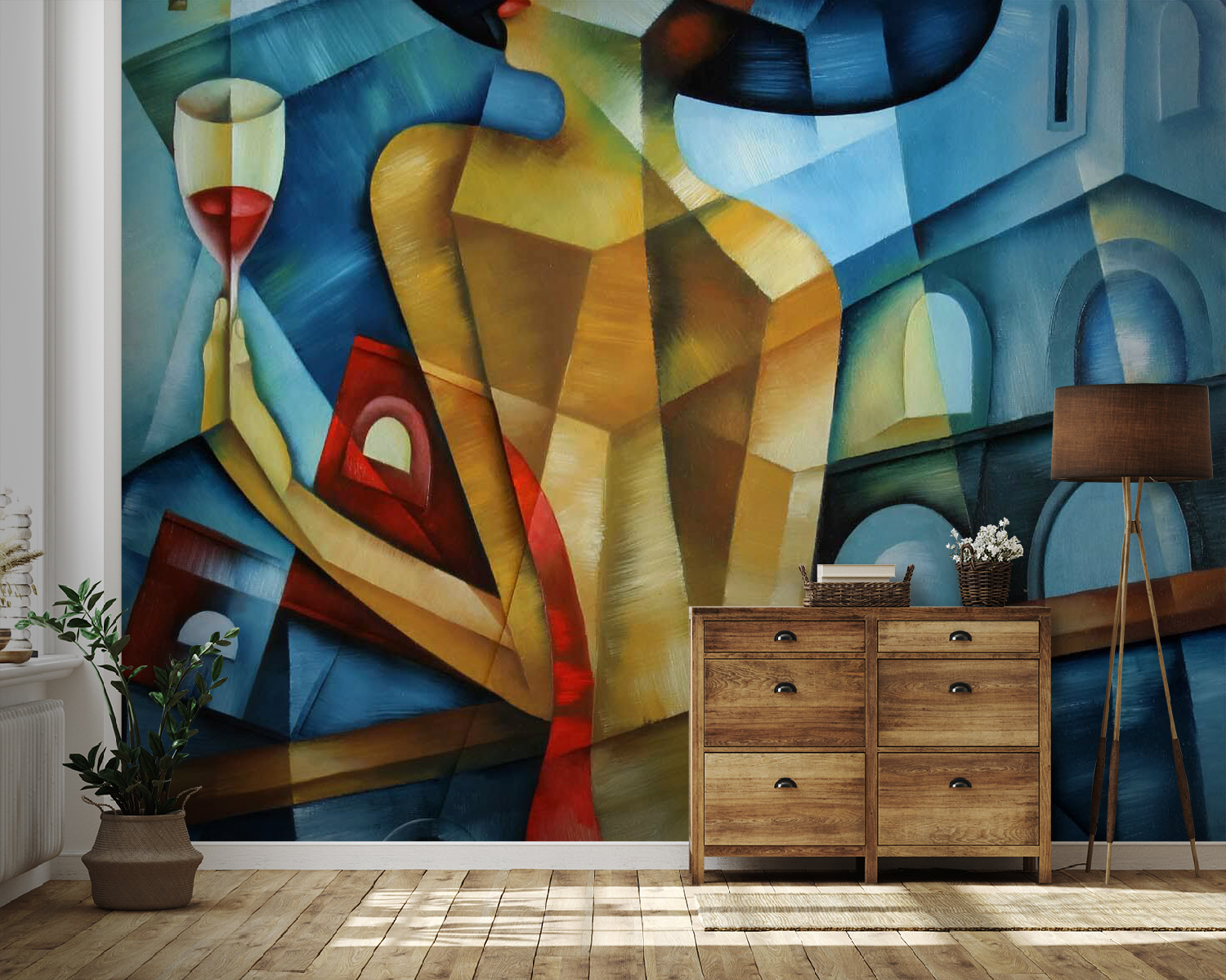 Predstavte si túto nástennú maľbu, ktorá vás víta každé ráno – dáma s pohárom vína, zahĺbená do svojich myšlienok. Predstavte si jej odvážnu prítomnosť na vašej stene, kde sa tieto akvarelové ťahy prelínajú a víria a vytvárajú atmosféru, ktorá je uvoľnená a zároveň mierne sofistikovaná. Je to ako mať vo svojom priestore tichú, štýlovú spoločníčku. Farby sú zasnené, hlavne modré a červené, vďaka čomu je dostatočne univerzálny takmer do každej miestnosti. Mohol by to byť dokonalý doplnok pre vašu obývaciu izbu, ktorý vnesie trochu umeleckého štýlu bez toho, aby bol príliš “do očí”. Možno vás bude inšpirovať k tomu, aby ste si na konci dlhého dňa oddýchli pri vlastnom pohári vína. Nie je to len dekorácia, je to výpoveď – bez námahy zachytí tú pokojnú chvíľu radosti a zamyslenia. Kto vie? Táto nástenná maľba sa možno stane kulisou mnohých útulných večerov a srdečných rozhovorov.