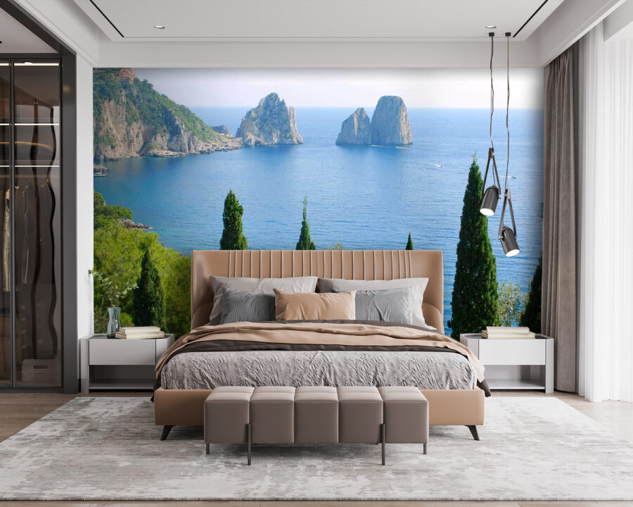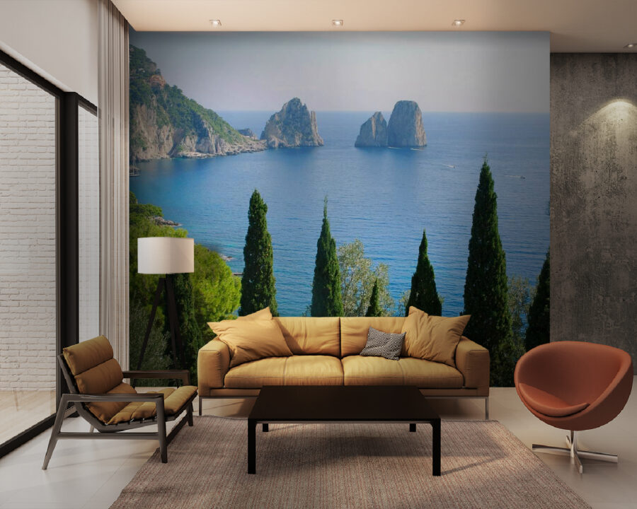 Premeňte svoj priestor na pokojné útočisko s touto očarujúcou nástennou maľbou, na ktorej je zobrazená skupina stromov vedľa pokojnej vodnej plochy. Predstavte si, ako popíjate rannú kávu, zatiaľ čo mäkké slnečné lúče tancujú na vlnách, alebo sa ponoríte do románu, zatiaľ čo príroda šepká za vaším oknom. Každý pohľad na túto tapetu vás môže preniesť do pokojného hája, kde starosti miznú ako šum lístia. Je ideálna na vytvorenie osviežujúcej atmosféry, ako keby ste mali kúsok raja priamo vo vašej domácnosti. Vychutnajte si krásu prírody bez toho, aby ste museli opustiť pohovku!