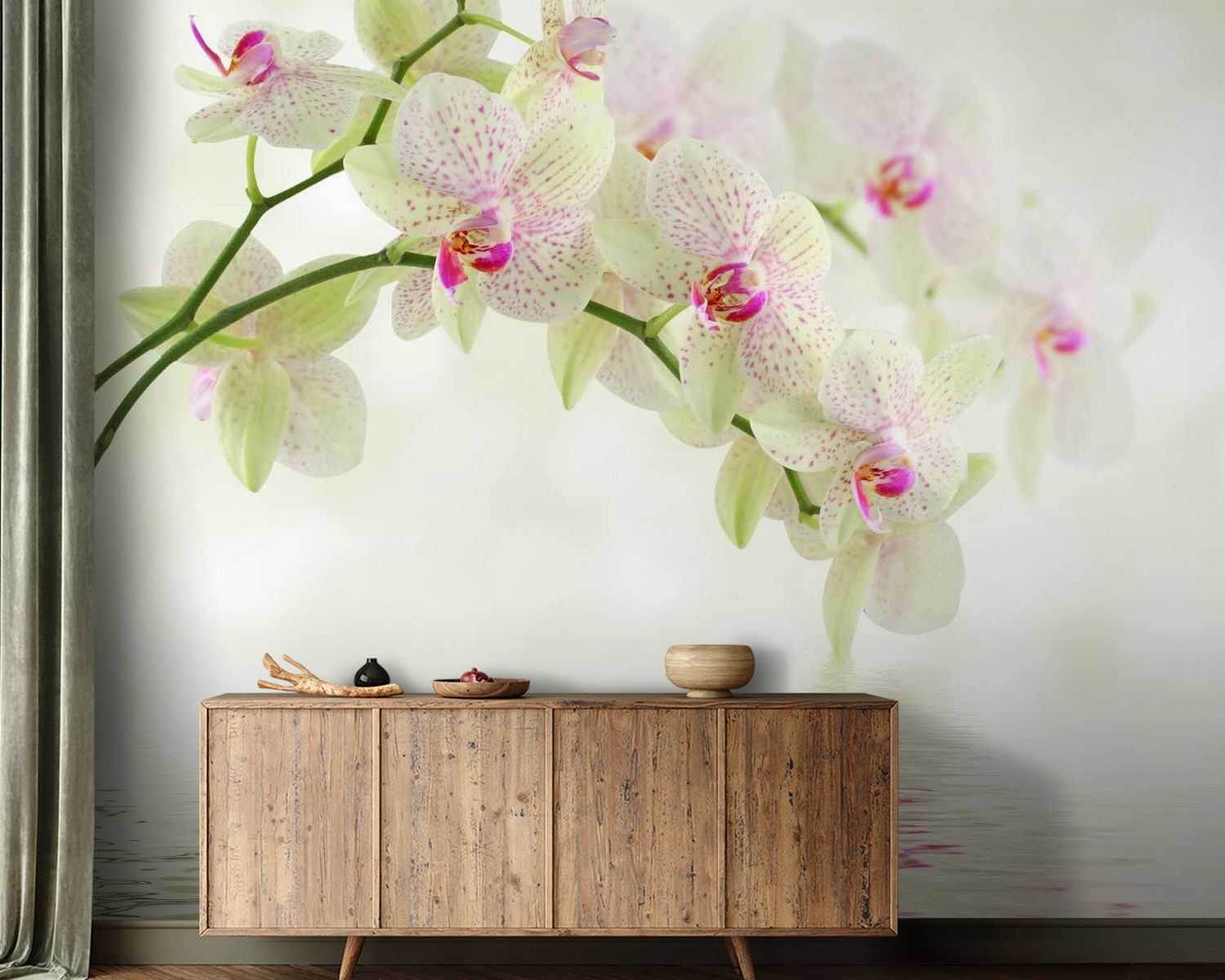 Premeňte akúkoľvek nudnú stenu na pokojné útočisko pomocou tejto úžasnej nástennej maľby s orchideami odrážajúcimi sa v pokojnej vode. Predstavte si, že sa každý deň zobudíte a privítajú vás jemné odtiene a jemné vlnky, ktoré evokujú pokojnú oázu priamo u vás doma. Je to ako mať kúsok krásy prírody, bez starostí so zalievaním rastlín alebo so slnečným svetlom. Priatelia sa pri vás zastavia a budú sa čudovať, ako ste dokázali vytvoriť takú krásnu atmosféru – prezraďte im tajomstvo a sledujte, ako omdlievajú! Táto nástenná maľba je ideálna do útulnej obývačky alebo zasnenej spálne a pozýva do vášho priestoru pokojné vibrácie. Ide o vytvorenie pokojného útočiska, kde každý pohľad pôsobí ako závan čerstvého vzduchu. Trochu kvetinového kúzla sa zíde na dlhú cestu, však?