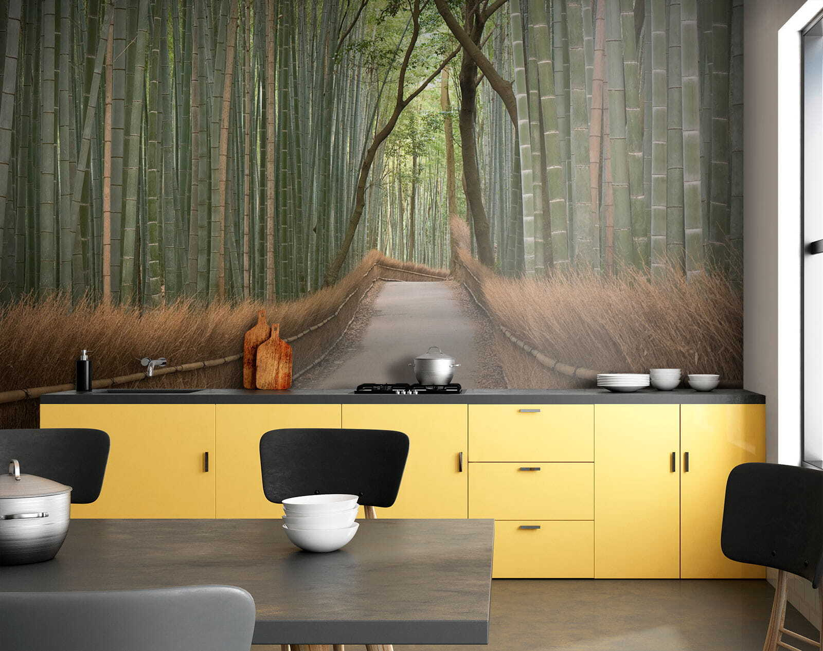 Predstavte si, že zakaždým, keď sa pozriete na svoju stenu, vstúpite priamo na pokojnú bambusovú cestičku. Táto nástenná maľba s názvom “Cesta s bambusovým plotom” bez námahy prenesie prírodu do vašej izby. Je ideálna pre každého, kto je blázon do jedinečných dekorácií. Vysoký zelený bambus a očarujúci plot vám takmer navodia pocit, že sa prechádzate pokojným lesom. Je ideálny pre trochu zenu vo vašom rušnom živote alebo len ako skvelý začiatok konverzácie, keď sa u vás zastavia priatelia. Skvele sa hodí do obývačky, spálne alebo kamkoľvek, kde potrebujete trochu úniku – bez toho, aby ste museli opustiť svoj dom!