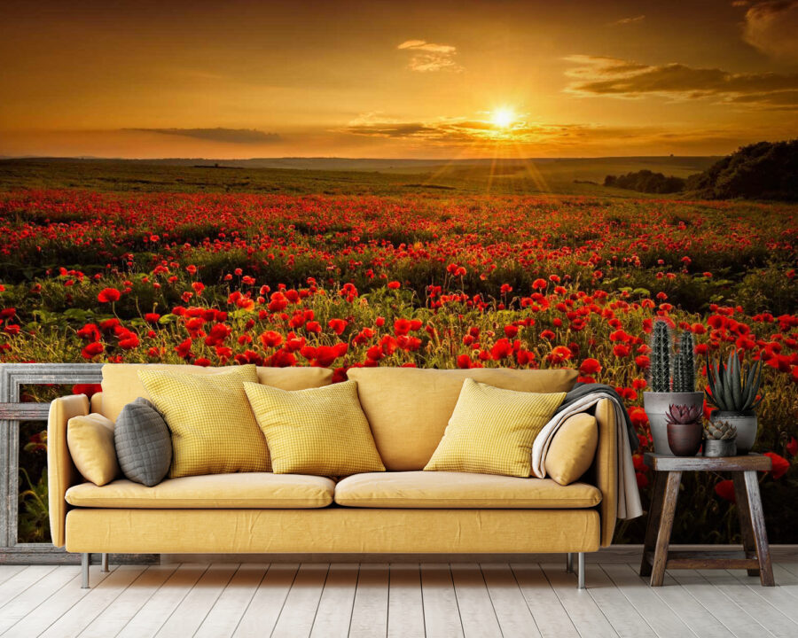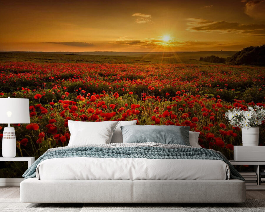 Premeňte akýkoľvek priestor pomocou podmanivej nástennej maľby “Pole červených kvetov”. Predstavte si, že vstúpite do slnkom zaliateho makového poľa, kde žiarivé červené kvety tancujú vo vetre. Táto nástenná maľba vnesie kvapku prírody priamo na vaše steny a vytvorí príjemnú a veselú atmosféru. Predstavte si útulné rána pri popíjaní kávy s pocitom, že ste obklopení rozkvitnutým rajom. Je to viac než len dekorácia; je to malý únik od každodenného zhonu. Perfektne sa hodí do obývačky alebo aj do kreatívneho kútika, určite vyvolá úsmevy a hrejivé rozhovory. Nechajte krásu prírody rozjasniť váš deň!