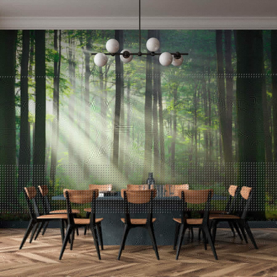 Premýšľali ste niekedy o tom, že by ste sa prechádzali slnkom osvetleným lesom priamo vo svojej obývačke? Táto fototapeta “Slnečné lúče prúdiace lesom” prinesie do vášho priestoru tento snový zážitok. Predstavte si, že tieto jemné slnečné lúče prenikajú cez vysoké majestátne stromy – je to ako pokojný oddych v prírode bez toho, aby ste museli opustiť gauč. Svieža zeleň a teplé lúče okamžite dodajú pocit pokoja a pohody. Ideálne pre milovníkov prírody a všetkých, ktorí chcú preniesť kúsok veľkej prírody do interiéru. Prakticky budete počuť štebot vtákov! Ideálne na vytvorenie útulnej, príjemnej atmosféry vo vašom domove. Hostia zostanú v úžase. A možno, len možno, sa budete cítiť o niečo šťastnejší pri každom pohľade naň. Skvele sa hodí do každého priestoru, ktorý potrebuje nádych prírodnej krásy.