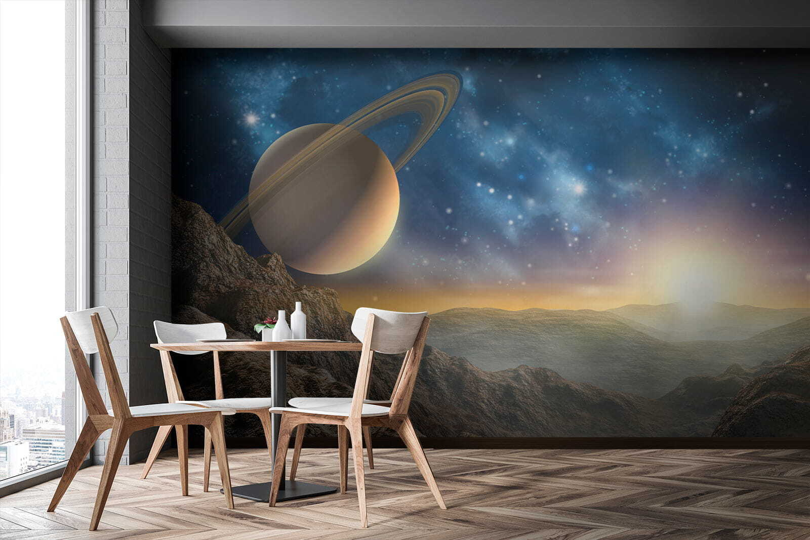Transform a plain wall into a celestial escape with the “Wall Murals Planet with Rings in the Sky.” This stunning mural whisks you away to a dreamy vista, where majestic mountains meet an awe-inspiring planet adorned with fabulous rings. Imagine cozying up in a living room where the morning sun beams down, casting a warm glow over this cosmic scene. It’s like having a slice of the universe right at home! Friends will wander in and drop their jaws, while you casually sip your tea, feeling like an intergalactic explorer. Perfect for anyone who loves to gaze at the stars or just wants to spark some cosmic inspiration in their space—now, that’s a conversation starter!