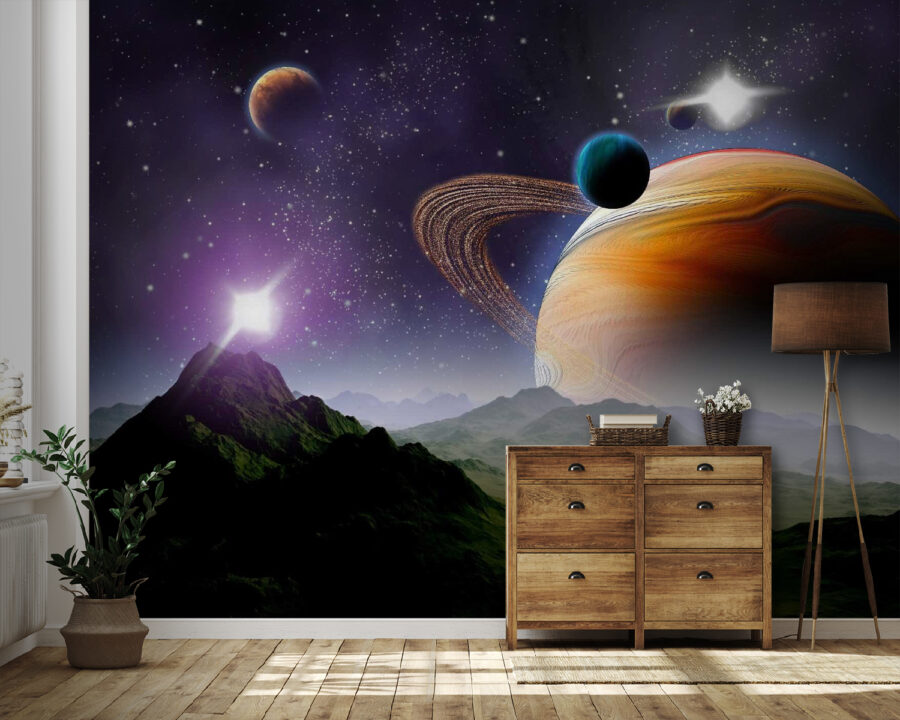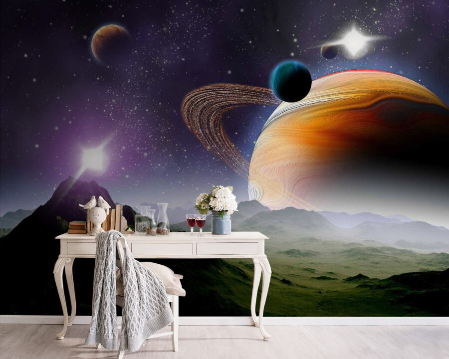 Premeňte svoj priestor na vesmírny útek s touto úžasnou nástennou maľbou, ktorá zobrazuje planéty a hviezdy v rozľahlom vesmíre. Predstavte si, že vstúpite do galaxie, kde sa farby stretávajú v tanci žiarivých odtieňov a jemných vírov. Táto fototapeta nielen zdobí steny, ale podnecuje predstavivosť a nádych putovania. Predstavte si, ako sa schúlite s knihou, stratíte sa v príbehu a vesmír vás obklopí. Alebo možno inšpiruje k hlbokým rozhovorom o živote, snoch a o tom, čo je tam vonku. Hodí sa do každej miestnosti a je dokonalým začiatkom konverzácie – kto by sa nechcel rozprávať o medzihviezdnych dobrodružstvách pri popíjaní kávy? Nie je to len nástenná maľba, je to brána do vesmíru priamo u vás doma!