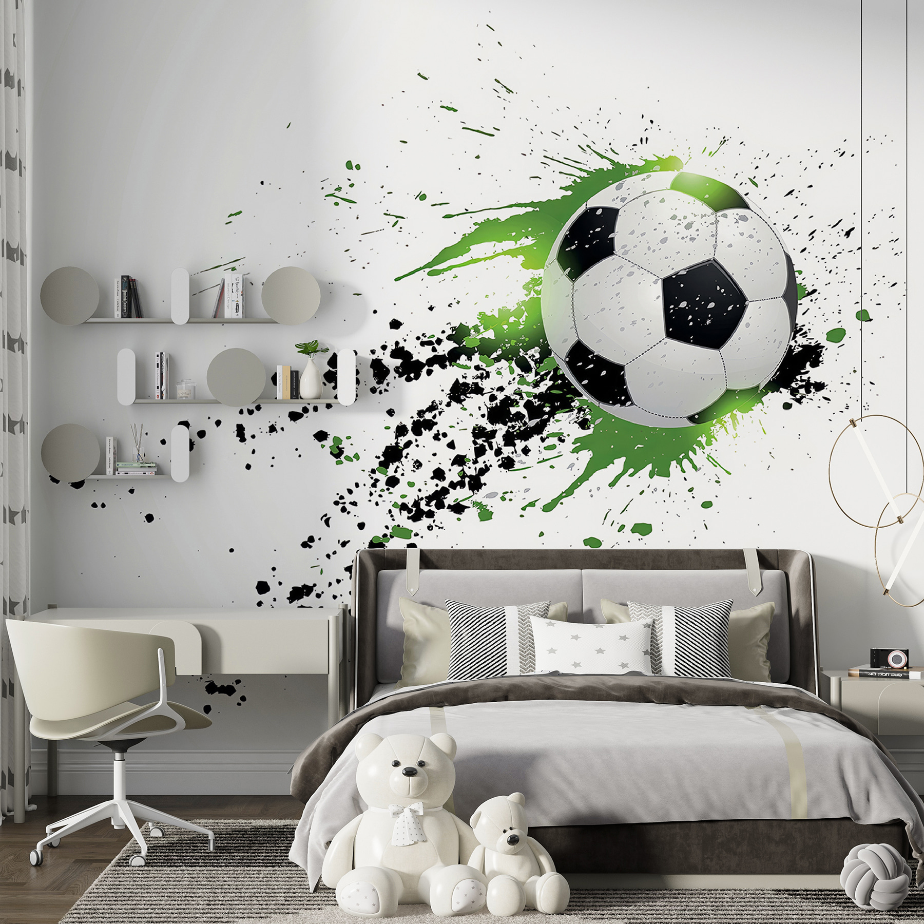Ahoj! Predstavte si to – splash farieb a lietajúca futbalová lopta priamo na vašej stene. Presne to získate s nástennou maľbou “Futbalová lopta s umeleckým postriekaním”. Je to, akoby niekto zachytil dokonalý, akciou nabitý moment zápasu, zmrazil ho v čase a potom pridal trochu umeleckého vkusu. Zelené a čierne striekance jej dodávajú takú živú, zábavnú atmosféru. Izba vášho dieťaťa sa okamžite premení na chladné, športové útočisko. A úprimne, aj kamaráti by vám ju mohli závidieť! Pri každom pohľade na ňu prakticky počujete ich jasot a cítite nadšenie. Úplne skvelé pre mladých futbalových fanatikov, ktorí snívajú vo veľkom, však?