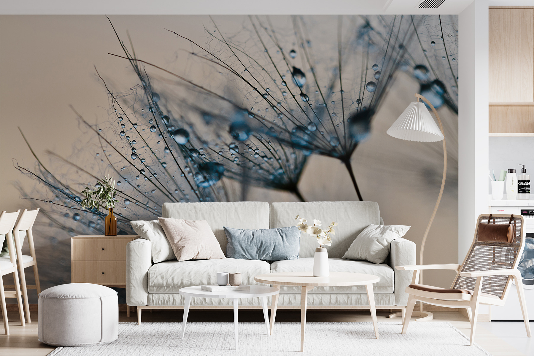 Predstavili ste si niekedy premenu nevýraznej steny na pokojné, prírodou inšpirované majstrovské dielo? Pozrite si nástennú maľbu “Kvapky rosy na semenách púpavy”. Táto nástenná maľba nie je len obrazom, ale aj náladou – každá jemná kvapka rosy, ktorá sa trbliece na týchto pernatých semienkach púpavy, vás môže uniesť na pokojnú rannú prechádzku do záhrady. Je to ako preniesť kúsok zasneného vonkajšieho kúzla priamo do vašej obývačky alebo kancelárie. Ideálne pre každého, kto chce, aby jeho priestor pôsobil o niečo pokojnejšie a čarovnejšie. Predstavte si priateľa, ktorý vojde dnu a povie: “Páni, to je taký osviežujúci pocit.” Rozhodne to vytvorí priestor na rozhovory, relaxačné chvíle alebo dokonca len na pozeranie do prírody namiesto toho, aby ste robili prácu. A tie drobné kvapky rosy? Sú to malé detaily, ktoré robia všetko! Čisté a zároveň podmanivé, možno práve toto je ten štýlový akcent, o ktorom ste nevedeli, že ho potrebujete.
