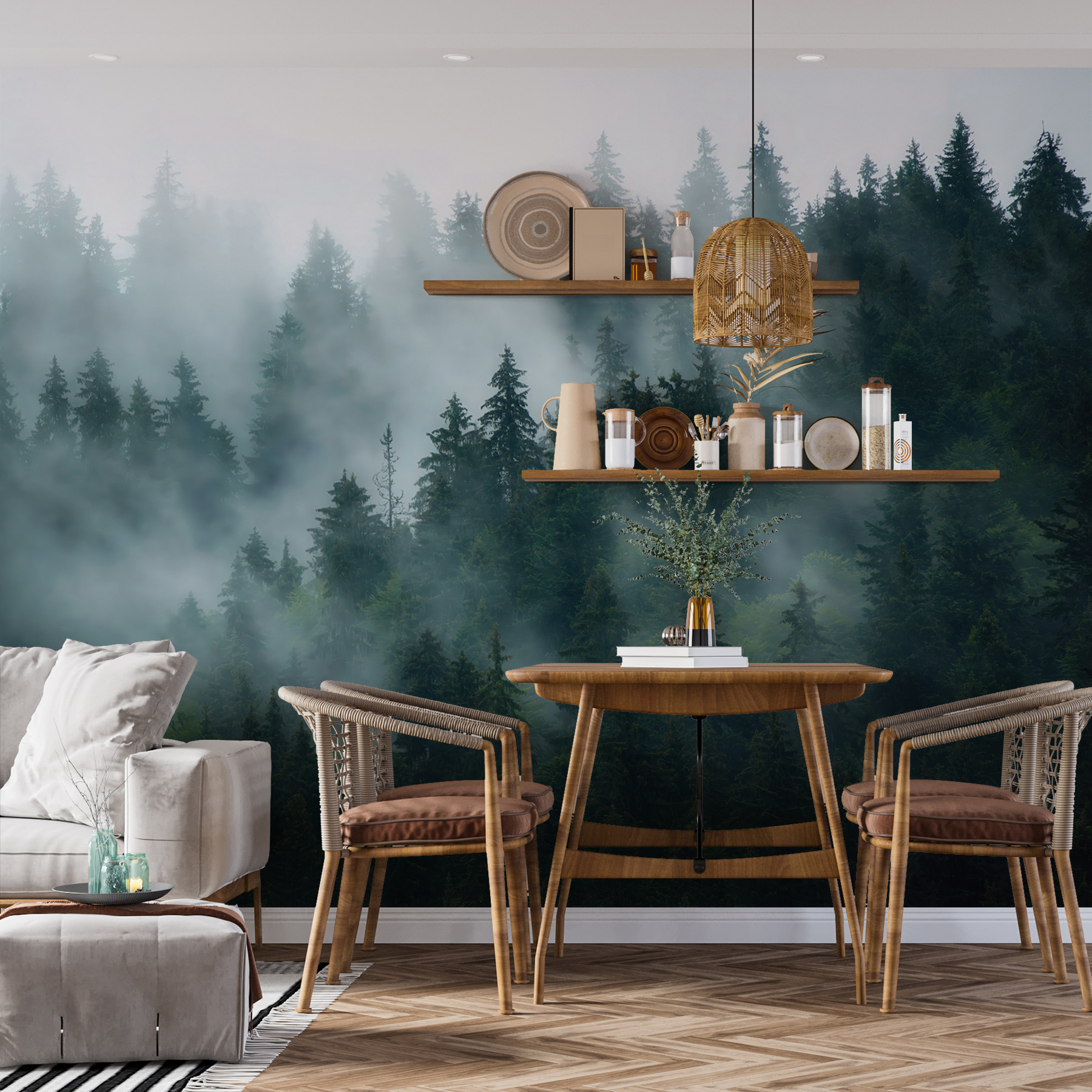 Nie je to len nástenná maľba, je to únik z každodenného zhonu – ako vaše súkromné lesné útočisko. Navyše je to dokonalý podnet na rozhovor. Predstavte si, že sa vaši hostia zastavia, zhlboka sa nadýchnu a povedia: “Páni, cítim sa ako na severozápade Pacifiku!” Áno, je to tak super. Tak prečo nepreniesť kúsok vonkajšieho prostredia dovnútra a nenechať svoj priestor zaplaviť pokojom?