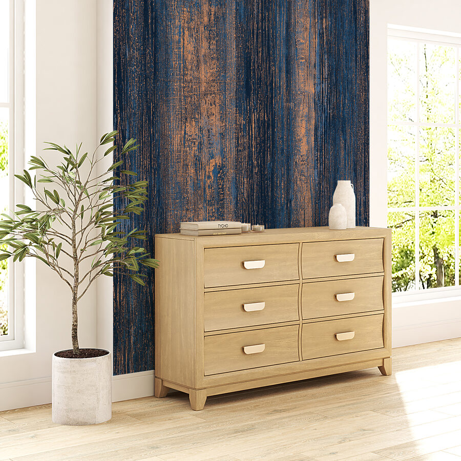 Predstavte si, že vstúpite do miestnosti, ktorá pôsobí ako útulná umelecká galéria, a to len vďaka jednej stene. Táto nástenná maľba s hlbokými modrými a teplými bronzovými tónmi dodáva jedinečný šmrnc, vďaka ktorému sa každý priestor bude cítiť príjemne. Pomyslite na pokojné vibrácie, ktoré prináša – ako pokojný oceán za súmraku, len s prímesou rustikálneho šarmu. Perfektne sa hodí do obývacej izby alebo do čitateľského kútika, kde dokáže podnietiť rozhovory a inšpirovať kreativitu. Priatelia sa budú čudovať, kde ste našli takýto skvost. Navyše sa dá veľmi ľahko vymeniť, keď máte chuť na zmenu. Kto by povedal, že premena priestoru môže byť taká zábavná?