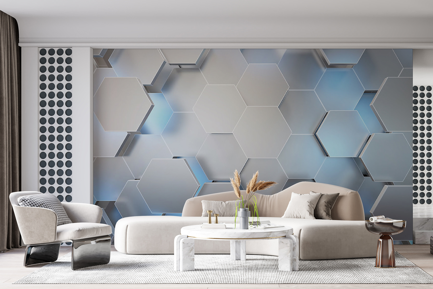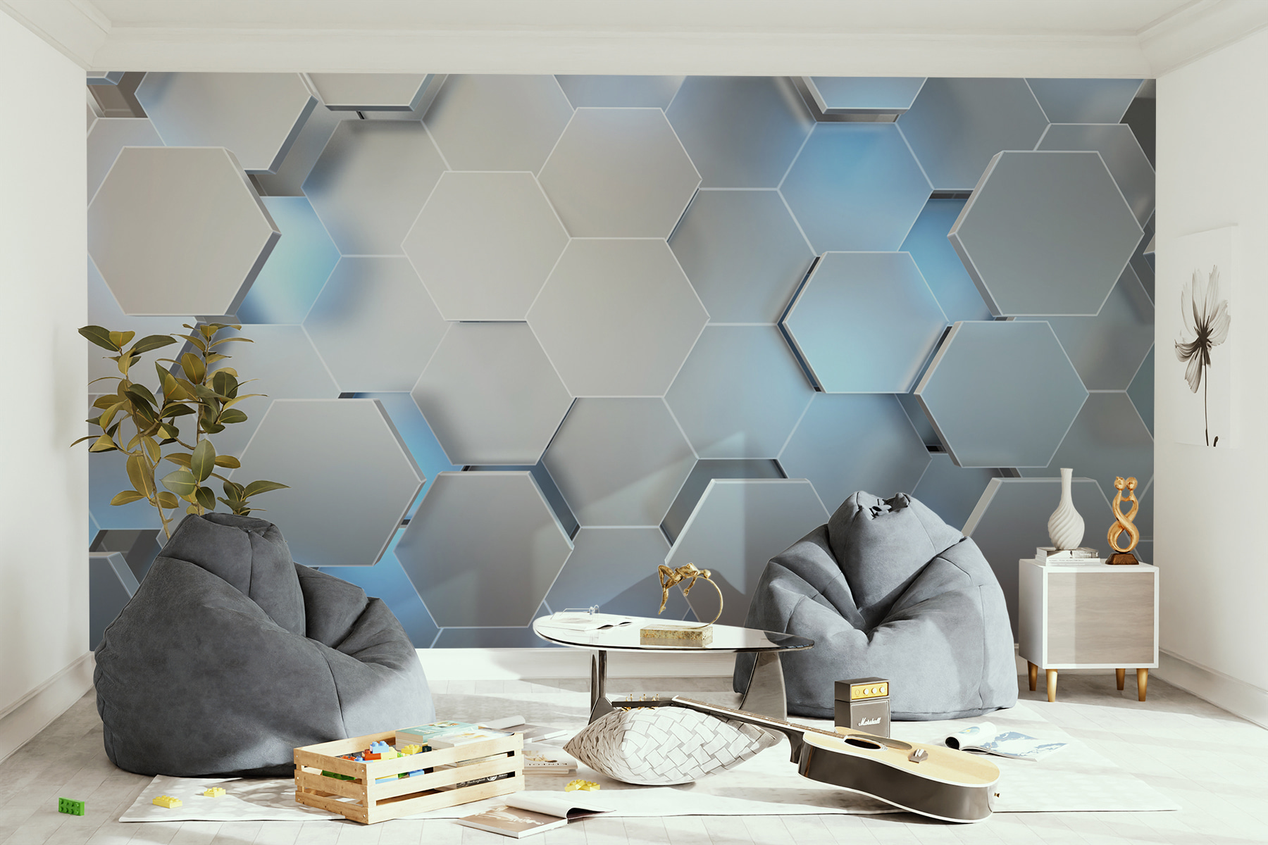 Chcete oživiť svoj priestor? Táto fototapeta má úžasný šesťuholníkový vzor, ktorý pôsobí ako chladný vánok počas slnečného dňa. Je dostatočne abstraktný na to, aby rozprúdil tvorivé šťavy, ale dostatočne štruktúrovaný na to, aby udržal pocit rovnováhy. Predstavte si, že vojdete do svojej izby a okamžite sa budete cítiť inšpirovaní alebo možno len trochu prefíkaní. Priatelia sa možno dokonca naklonia a povedia: “Páni, kde si to našiel?” Navyše je univerzálny – ideálny do obývačky, kancelárie alebo dokonca do útulného čitateľského kútika. Doprajte svojim stenám premenu, ktorá bude rovnako jedinečná ako váš štýl!
