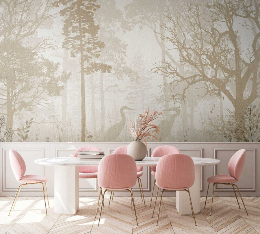 Predstavte si pokojné ráno, keď sa volavky pokojne prechádzajú hmlistým lesom. Táto fototapeta pôsobí ako jemný šepot prírody – ideálna na vnesenie nádychu pokoja do každej miestnosti. Je náladová a tajomná, no zároveň osviežujúco svojská, vďaka čomu vynikne v každom interiéri. Deti ho zbožňujú pre rozprávkovú atmosféru, zatiaľ čo dospelí ocenia akvarelovú eleganciu. Predstavte si tento úžasný lesný výjav v detskej izbe alebo v útulnom čitateľskom kútiku – je to ako závan čerstvého vzduchu, keď je svet príliš hlučný.
